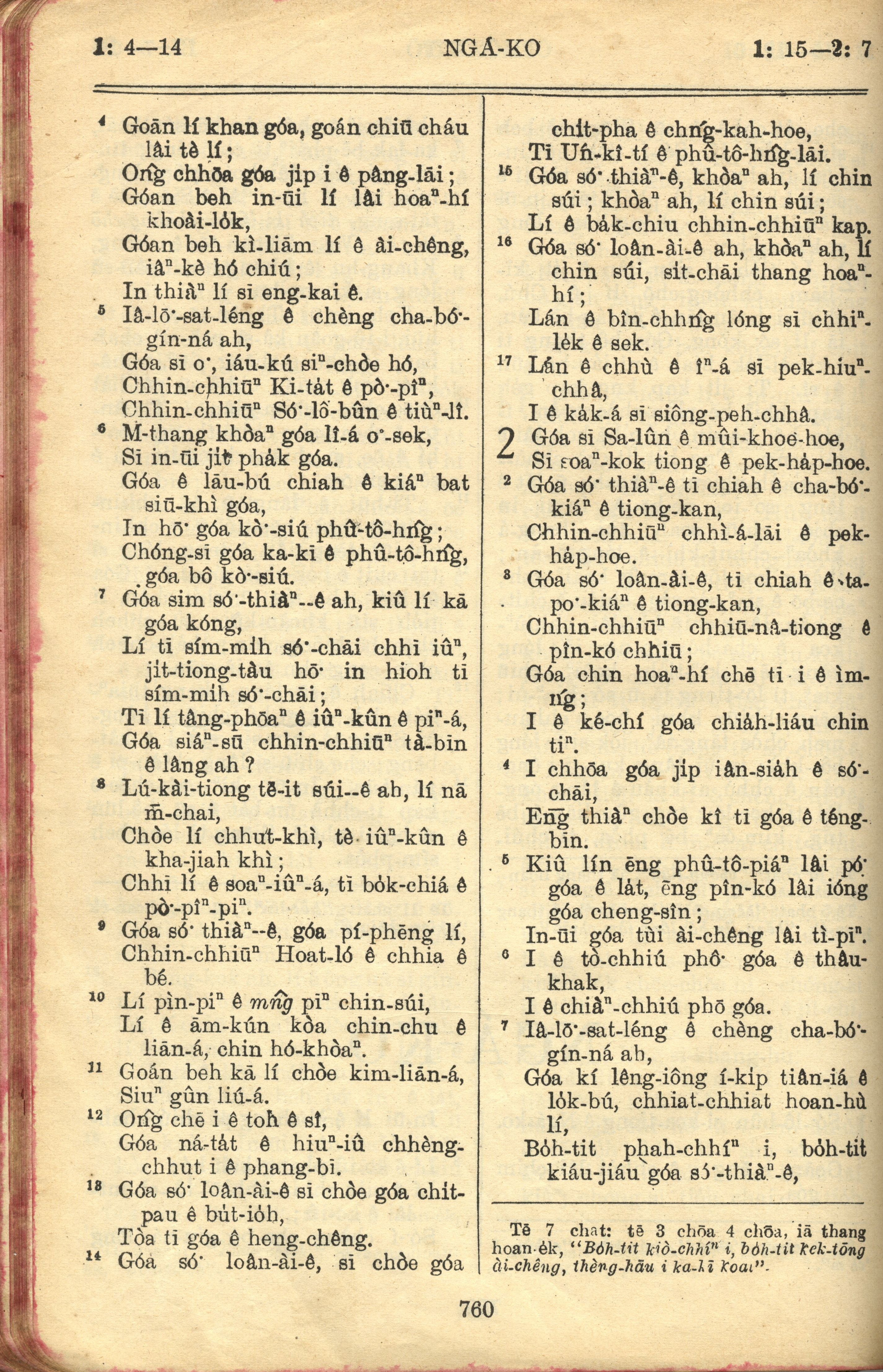 1957年巴克禮全羅台語聖經串珠版 雅歌 1 章 4 節到 2 章 7 節