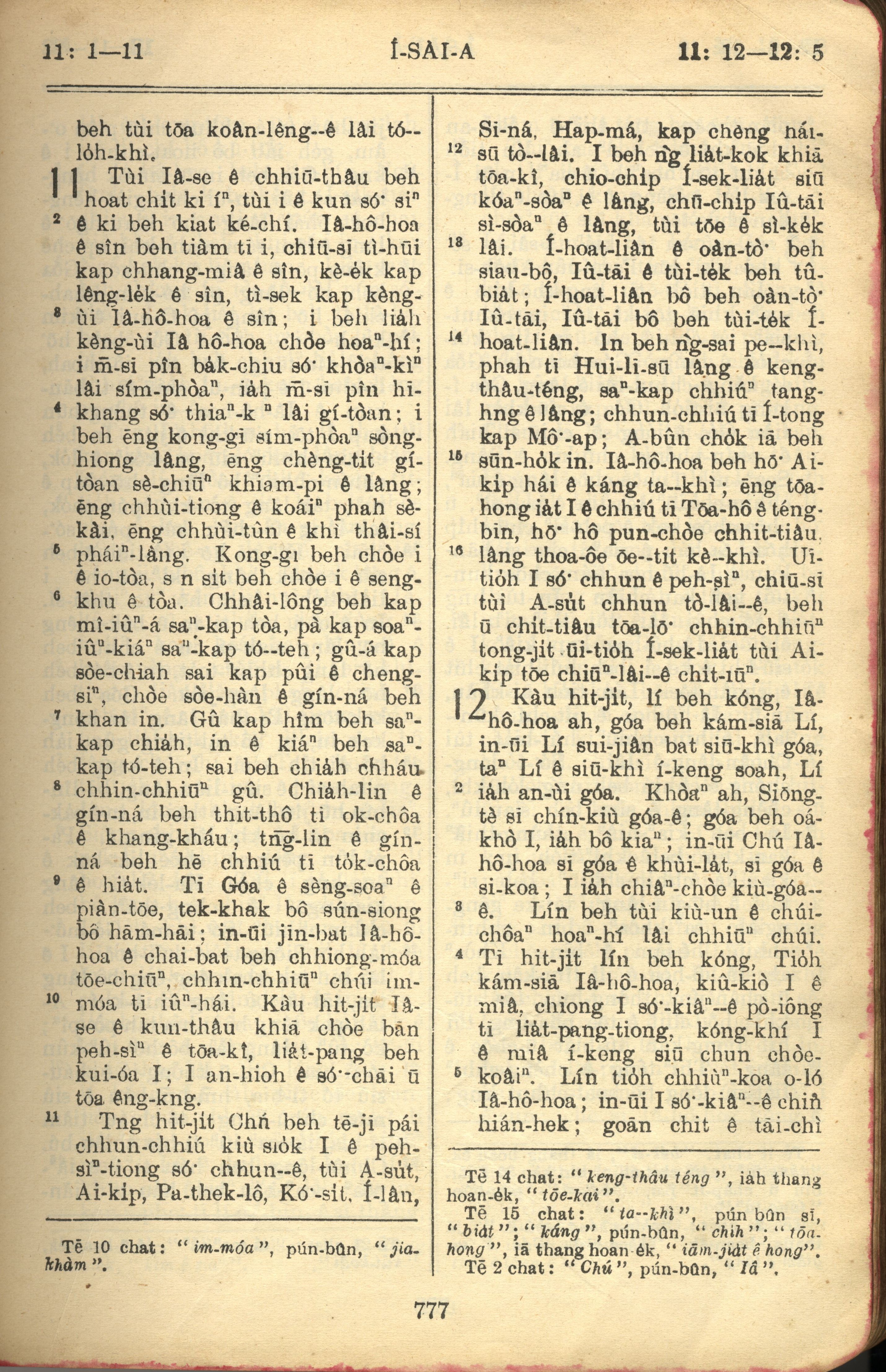 1957年巴克禮全羅台語聖經串珠版 以賽亞書 11 章 1 節到 12 章 5 節