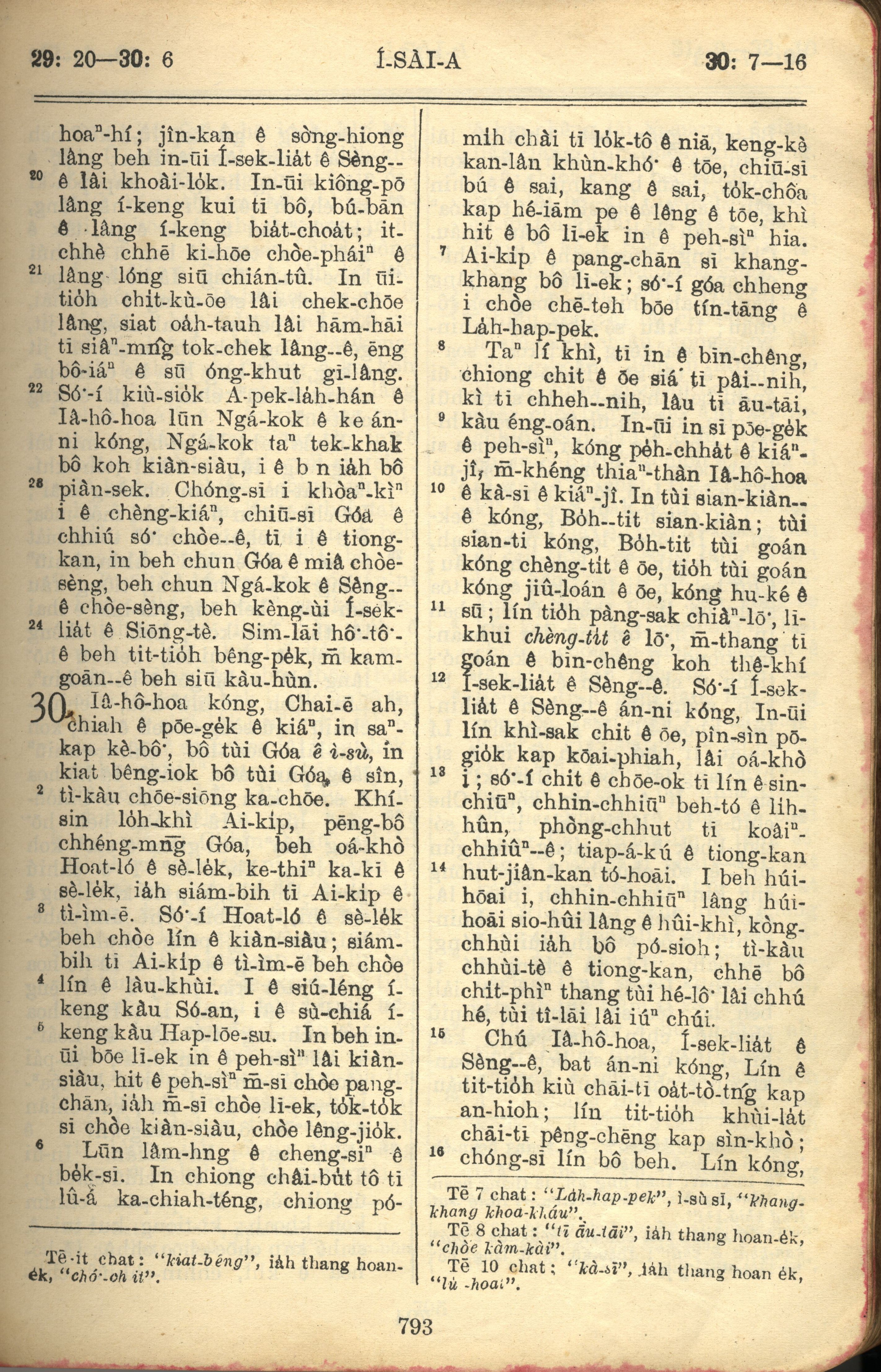 1957年巴克禮全羅台語聖經串珠版 以賽亞書 29 章 20 節到 30 章 16 節