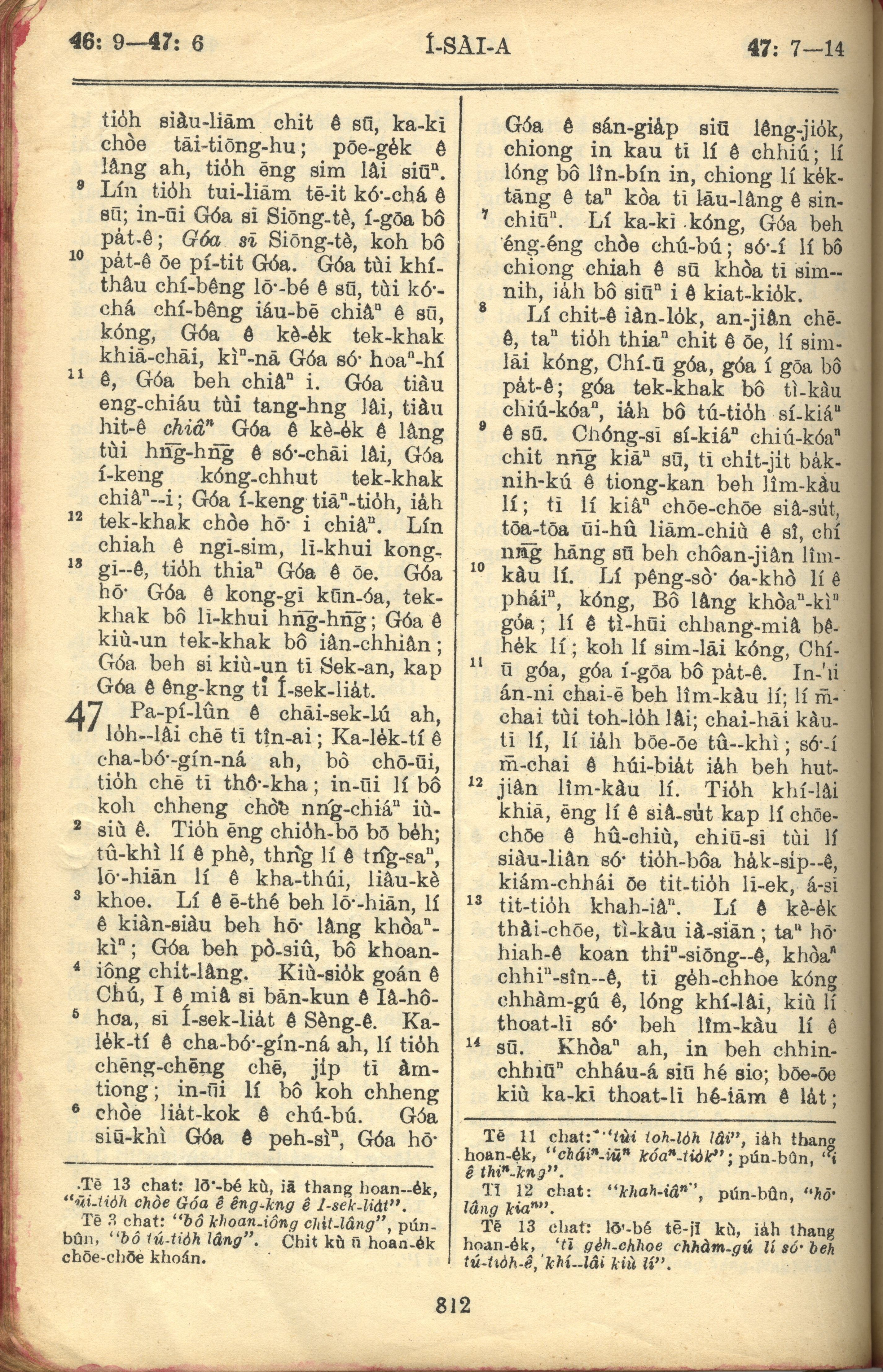 1957年巴克禮全羅台語聖經串珠版 以賽亞書 46 章 9 節到 47 章 14 節