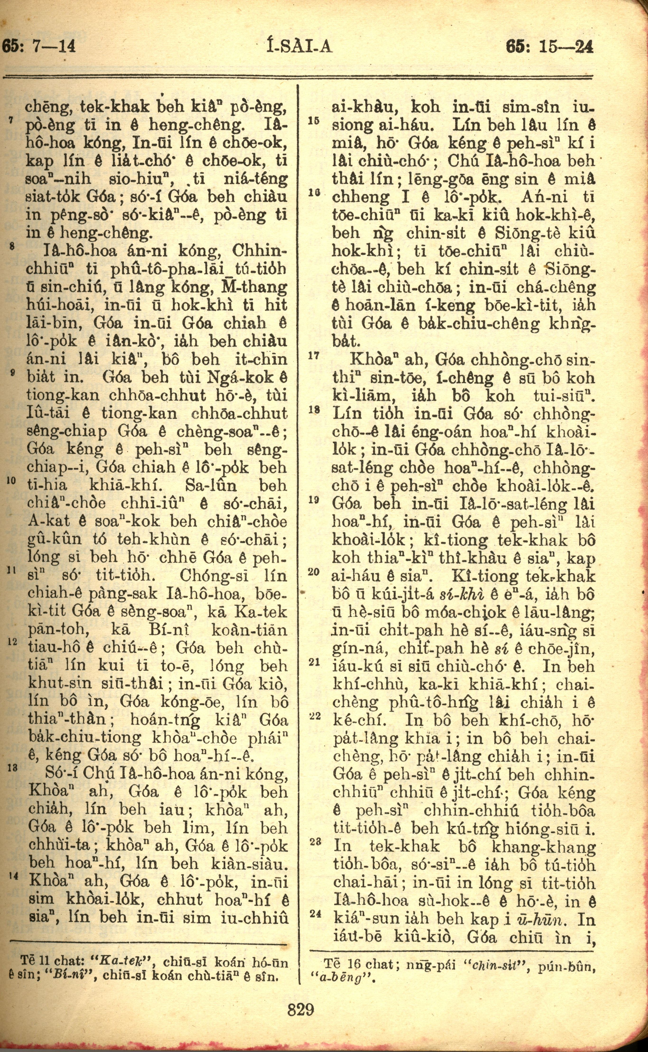 1957年巴克禮全羅台語聖經串珠版 以賽亞書 65 章 7 節到 65 章 24 節