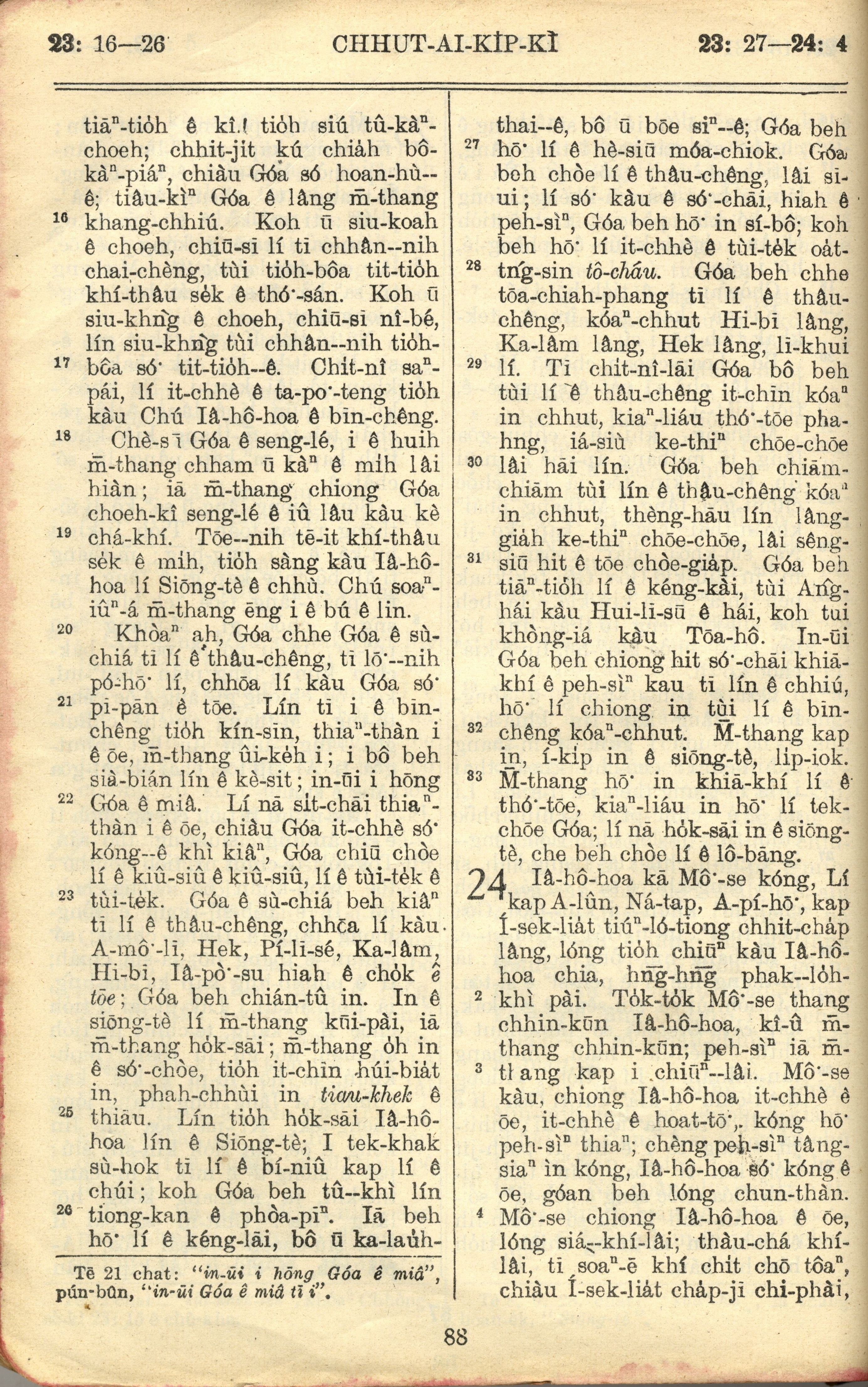 1957年巴克禮全羅台語聖經串珠版 出埃及記 23 章 16 節到 24 章 4 節
