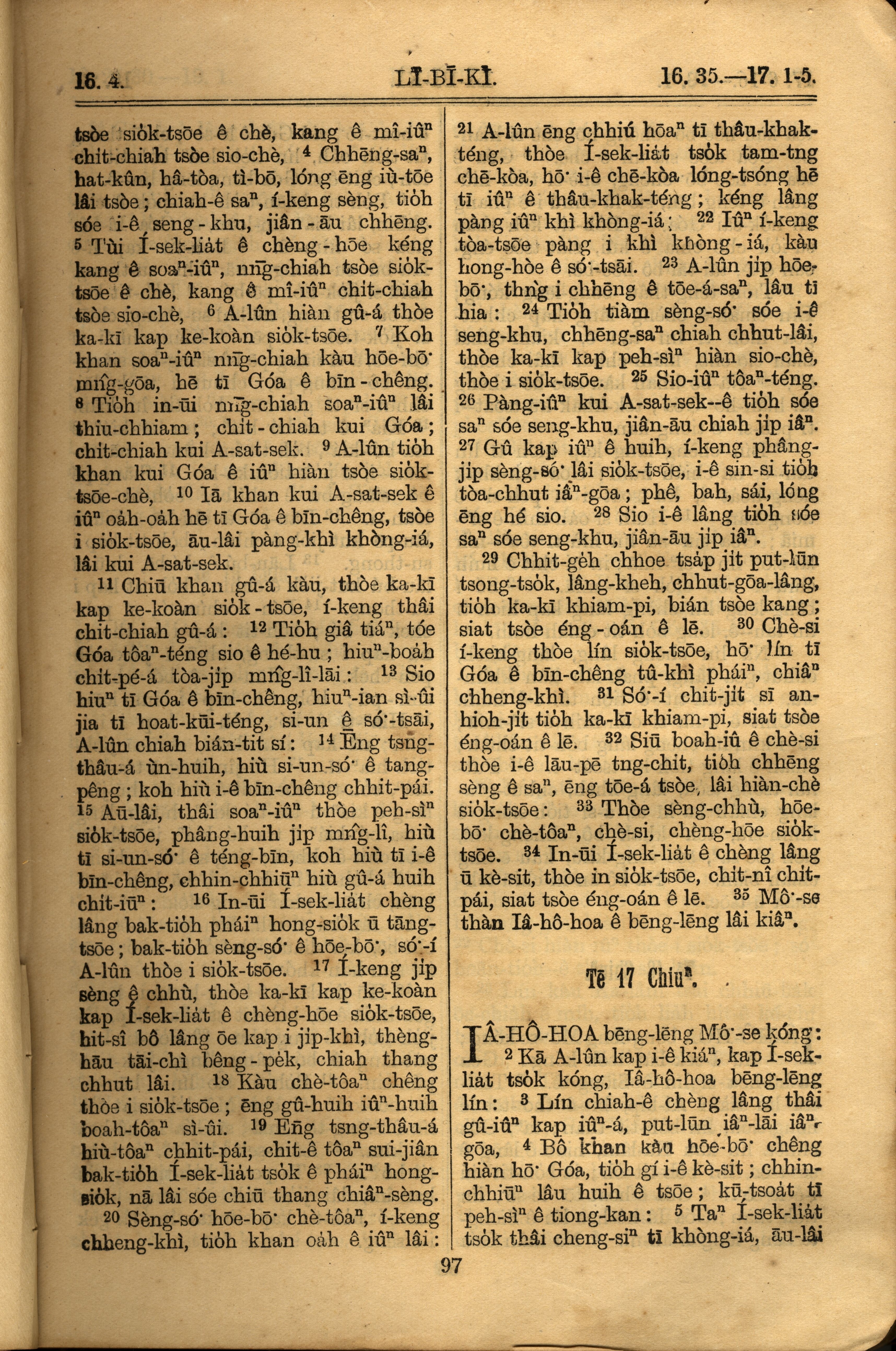 1921年羅馬字舊約全書 利未記 16 章 4 節到 17 章 5 節