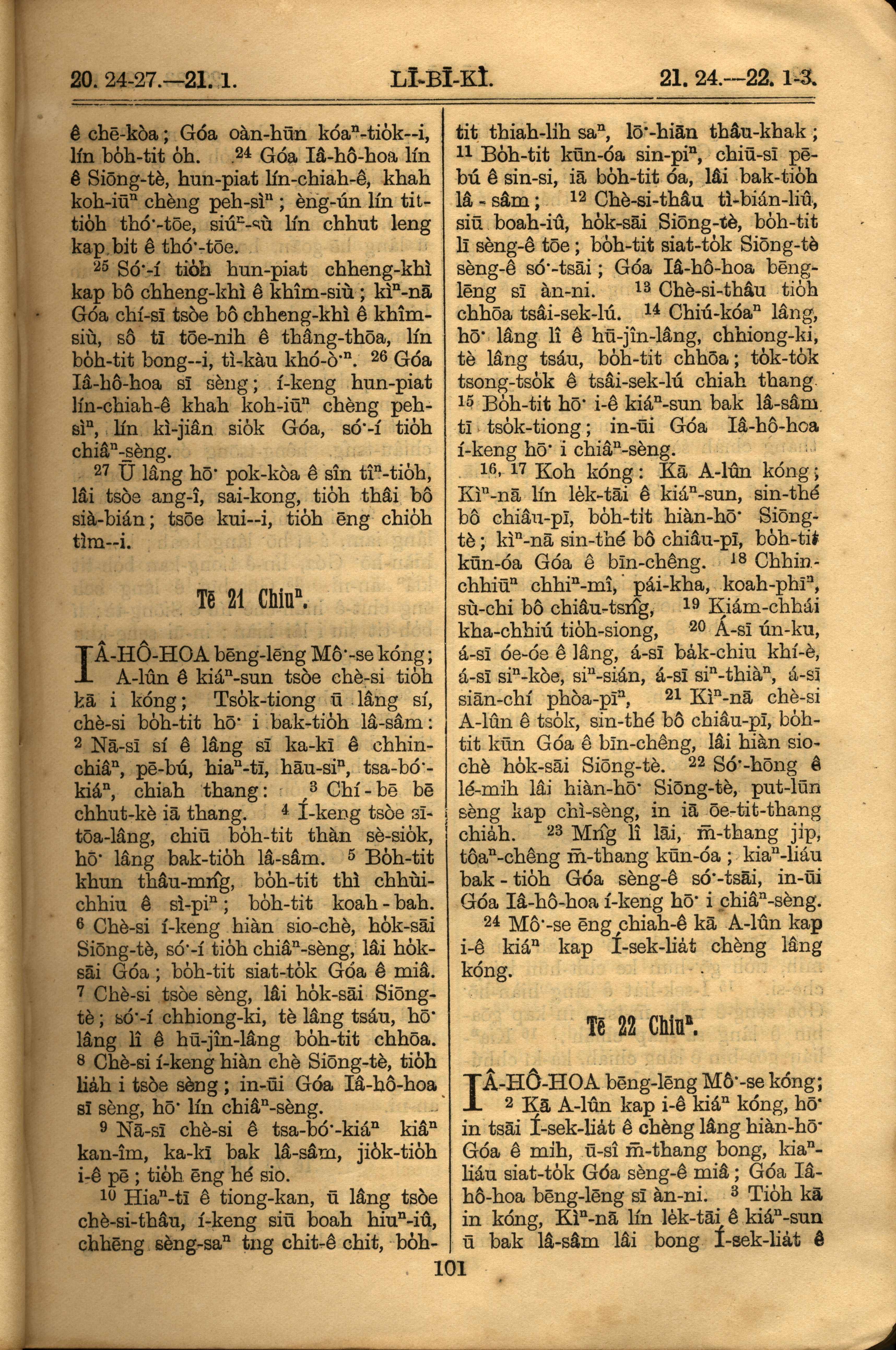 1921年羅馬字舊約全書 利未記 20 章 24 節到 22 章 3 節