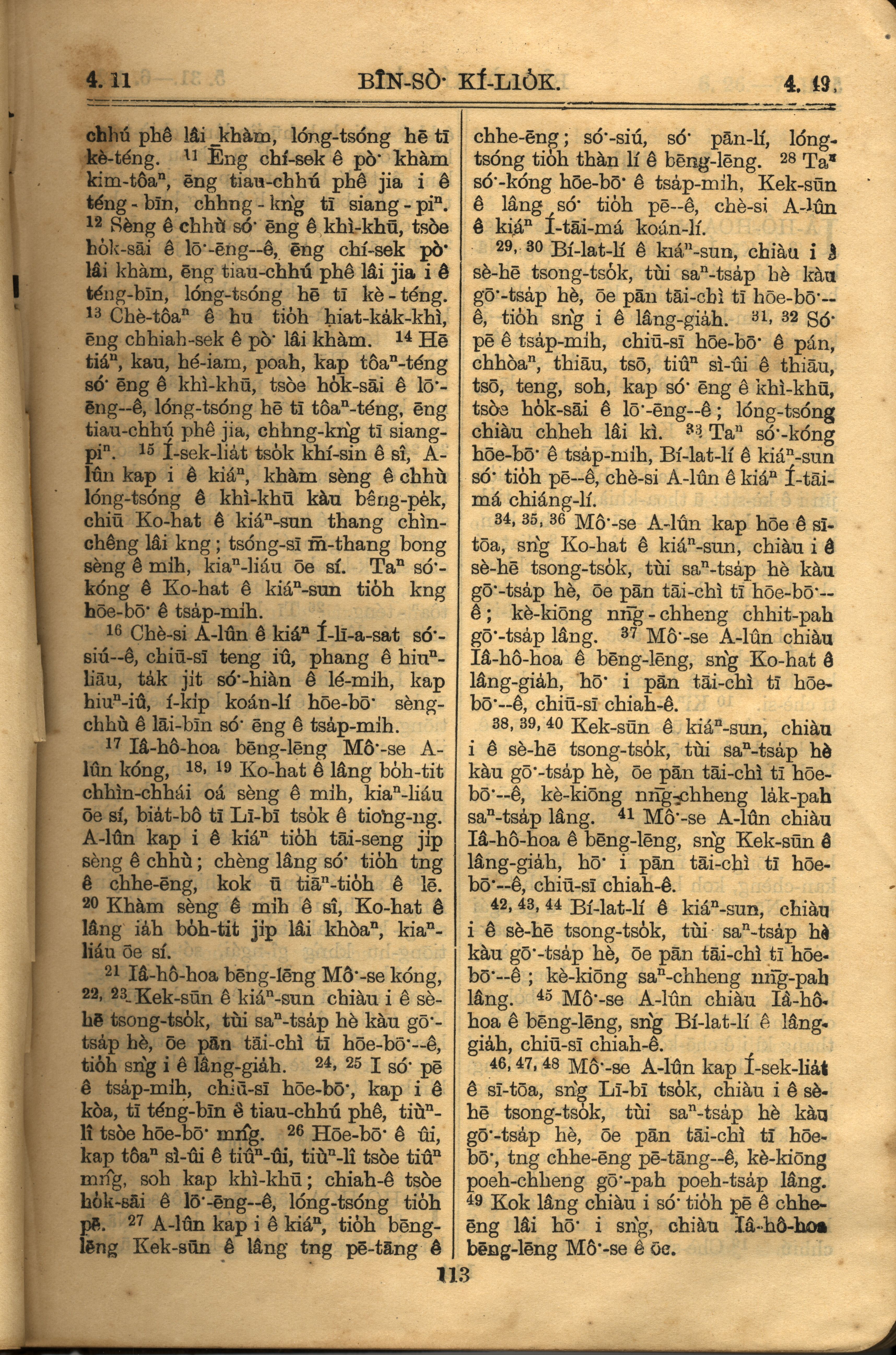 1921年羅馬字舊約全書 民數記 4 章 11 節到 4 章 49 節