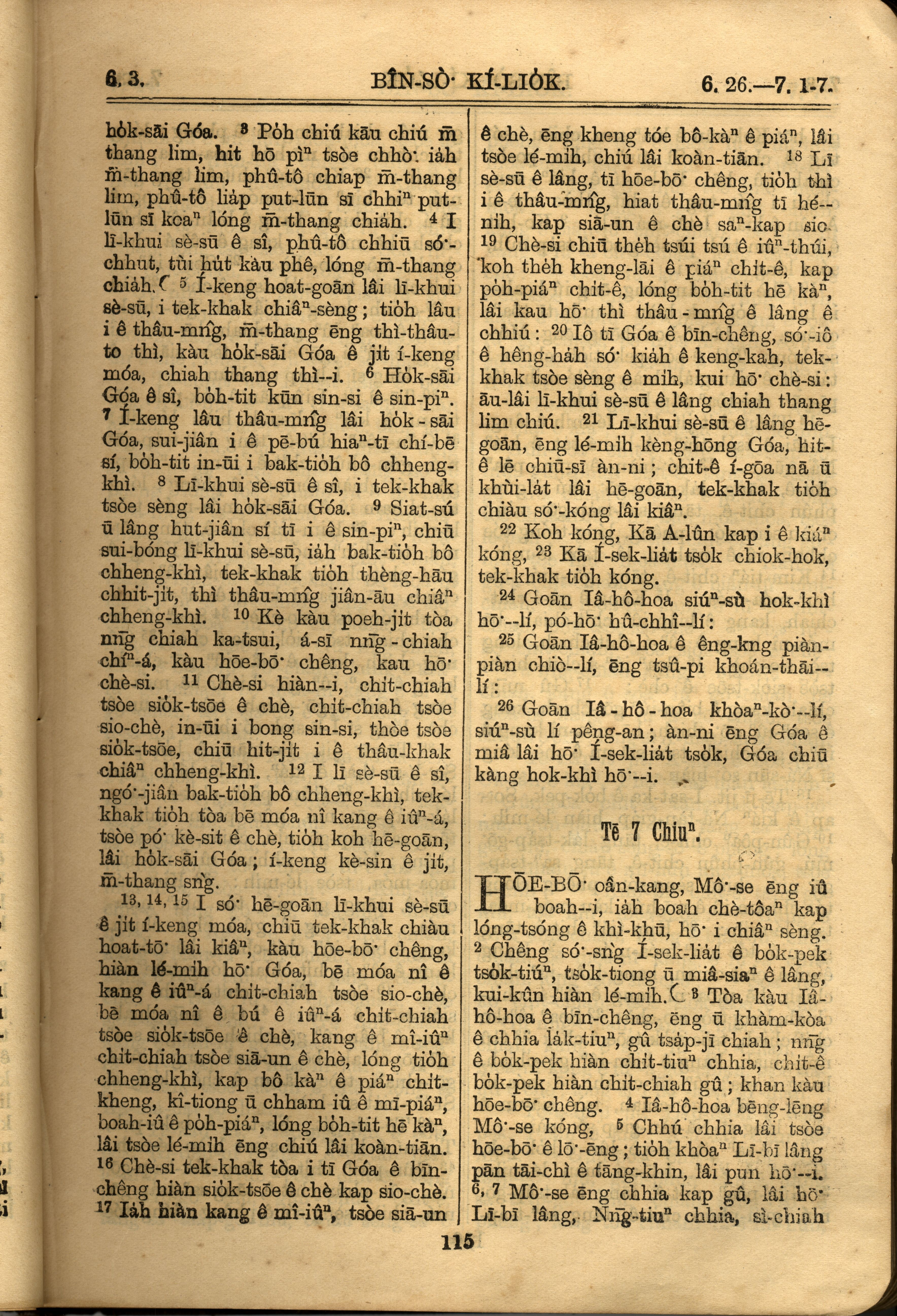 1921年羅馬字舊約全書 民數記 6 章 3 節到 7 章 7 節