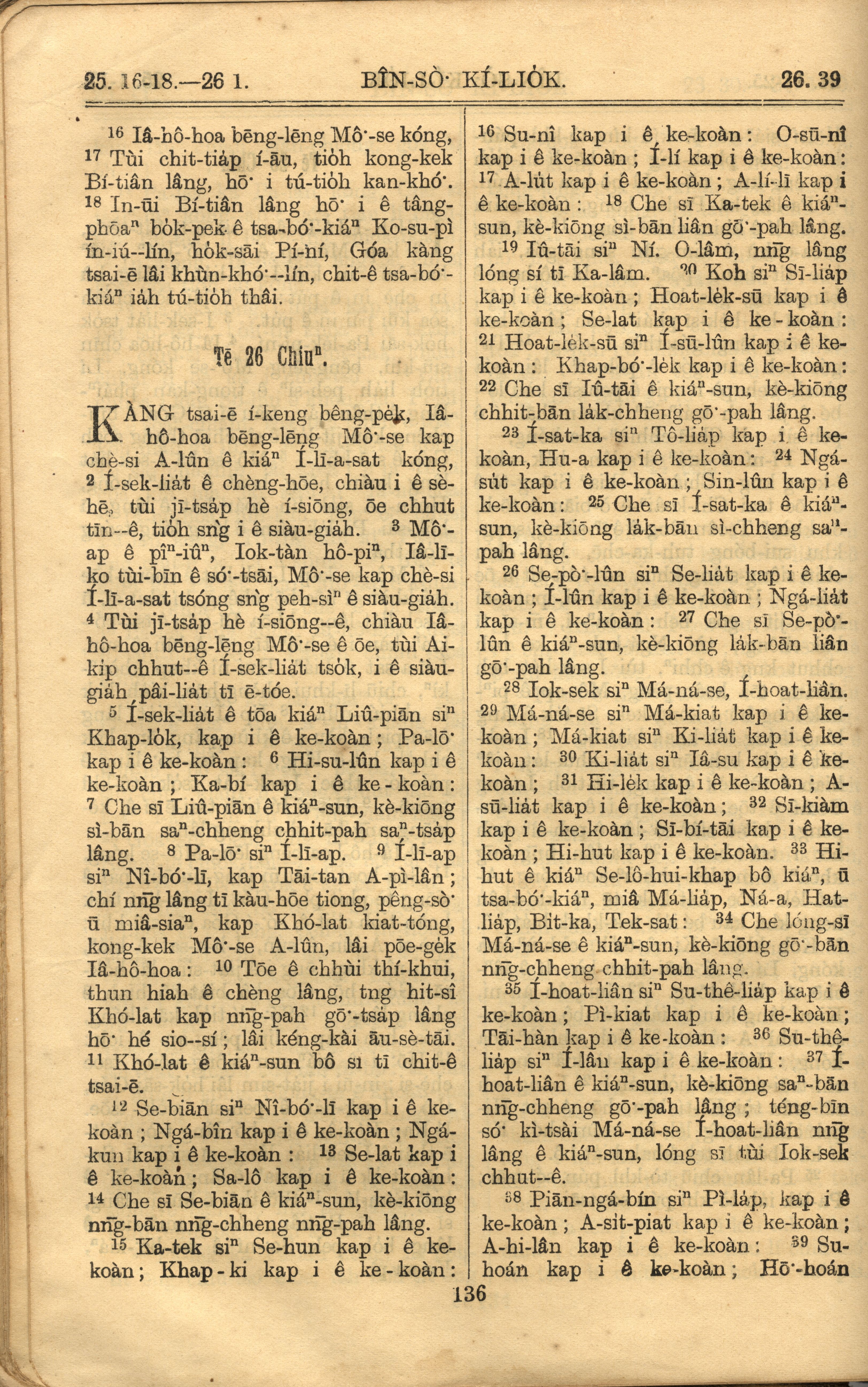 1921年羅馬字舊約全書 民數記 25 章 16 節到 26 章 39 節