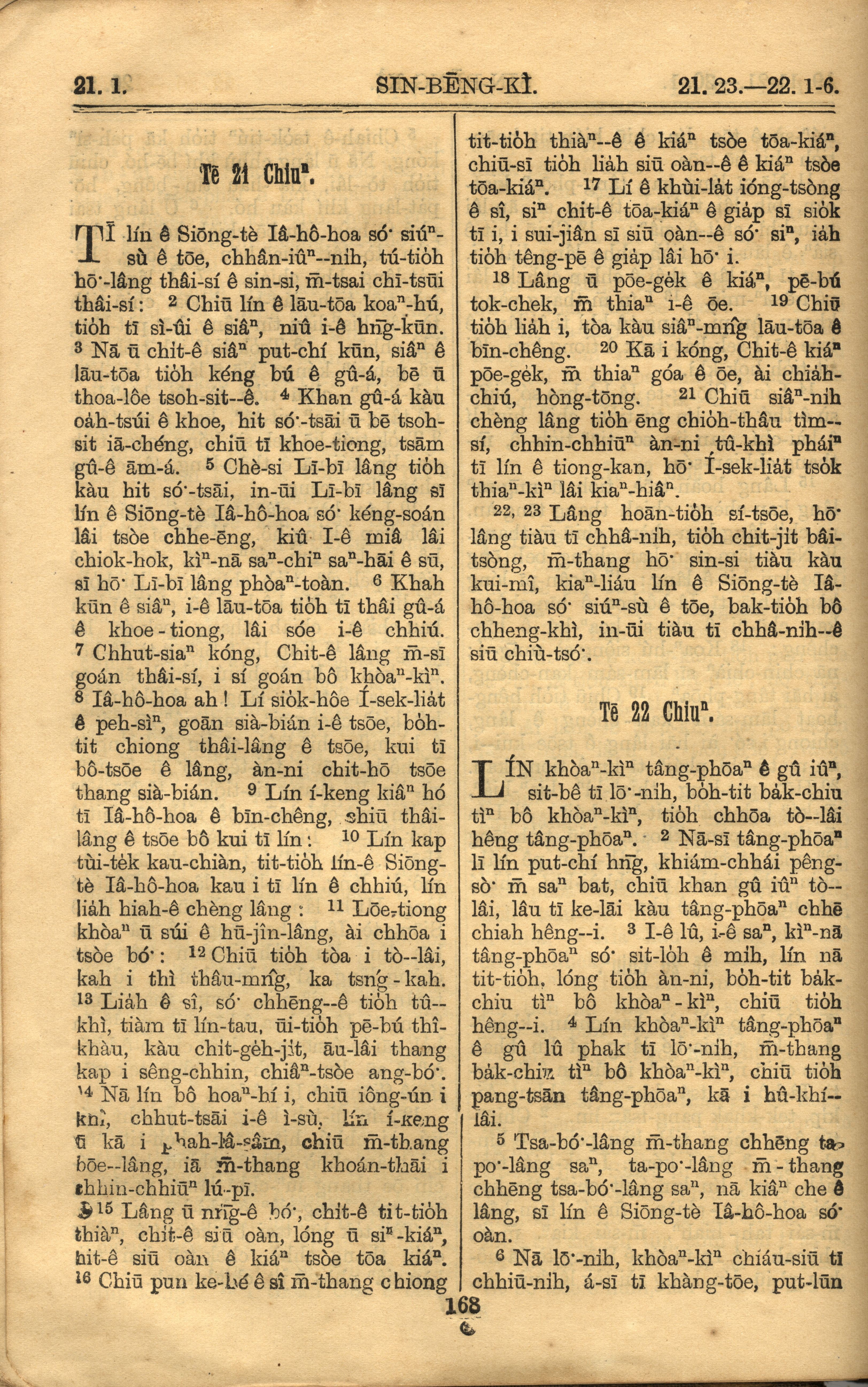 1921年羅馬字舊約全書 申命記 21 章 1 節到 22 章 6 節