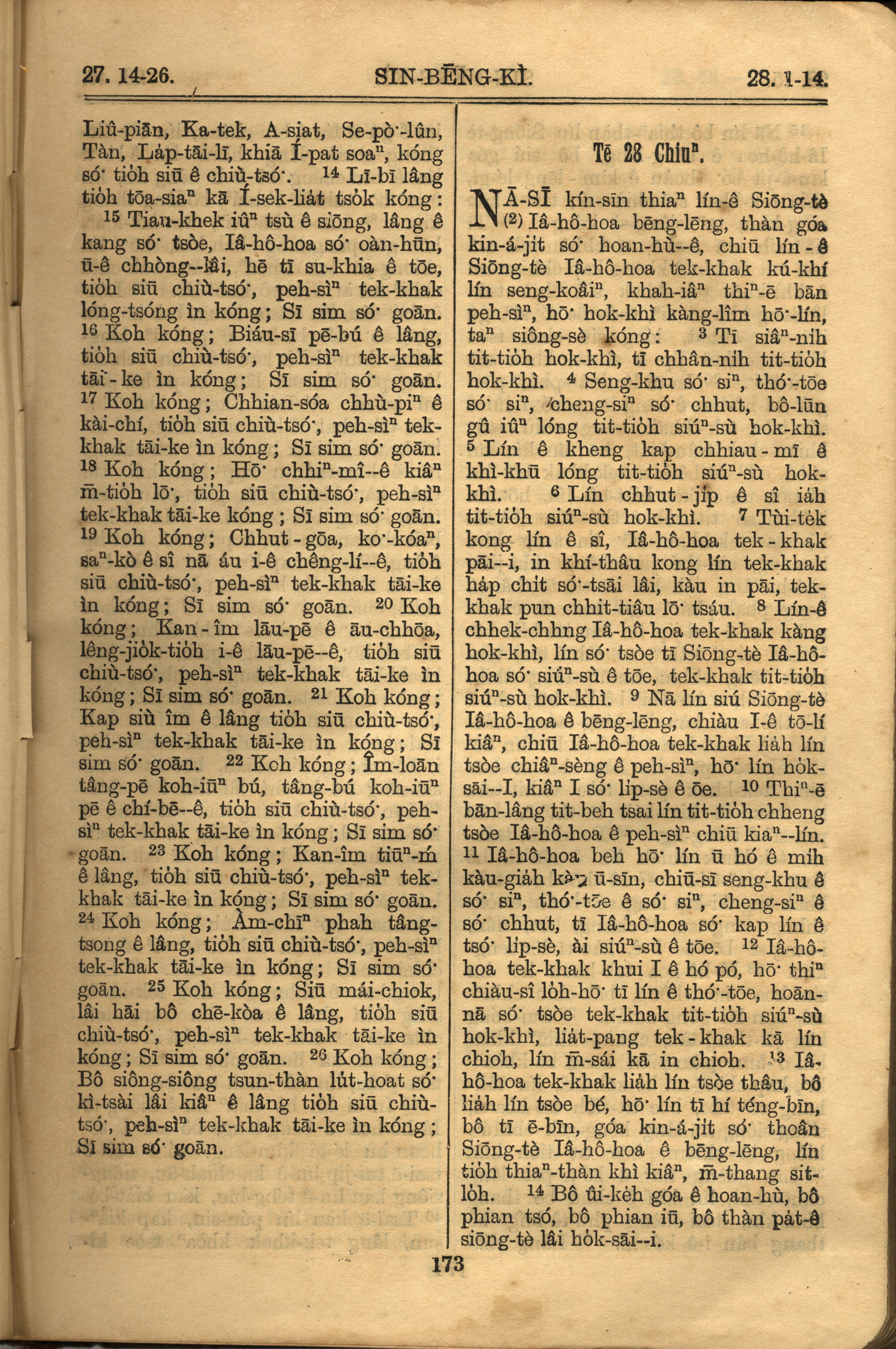 1921年羅馬字舊約全書 申命記 27 章 14 節到 28 章 14 節