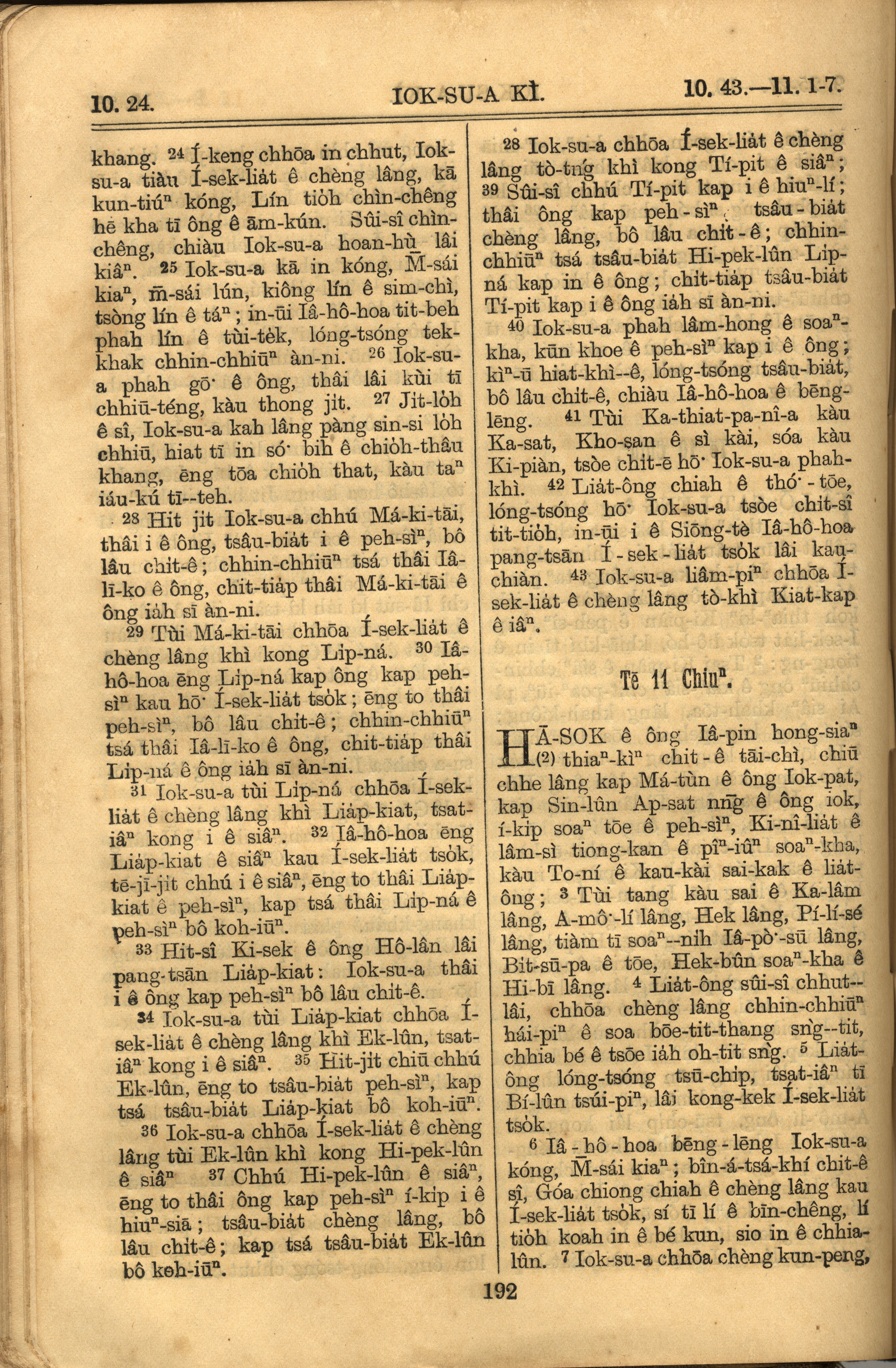 1921年羅馬字舊約全書 約書亞記 10 章 24 節到 11 章 7 節