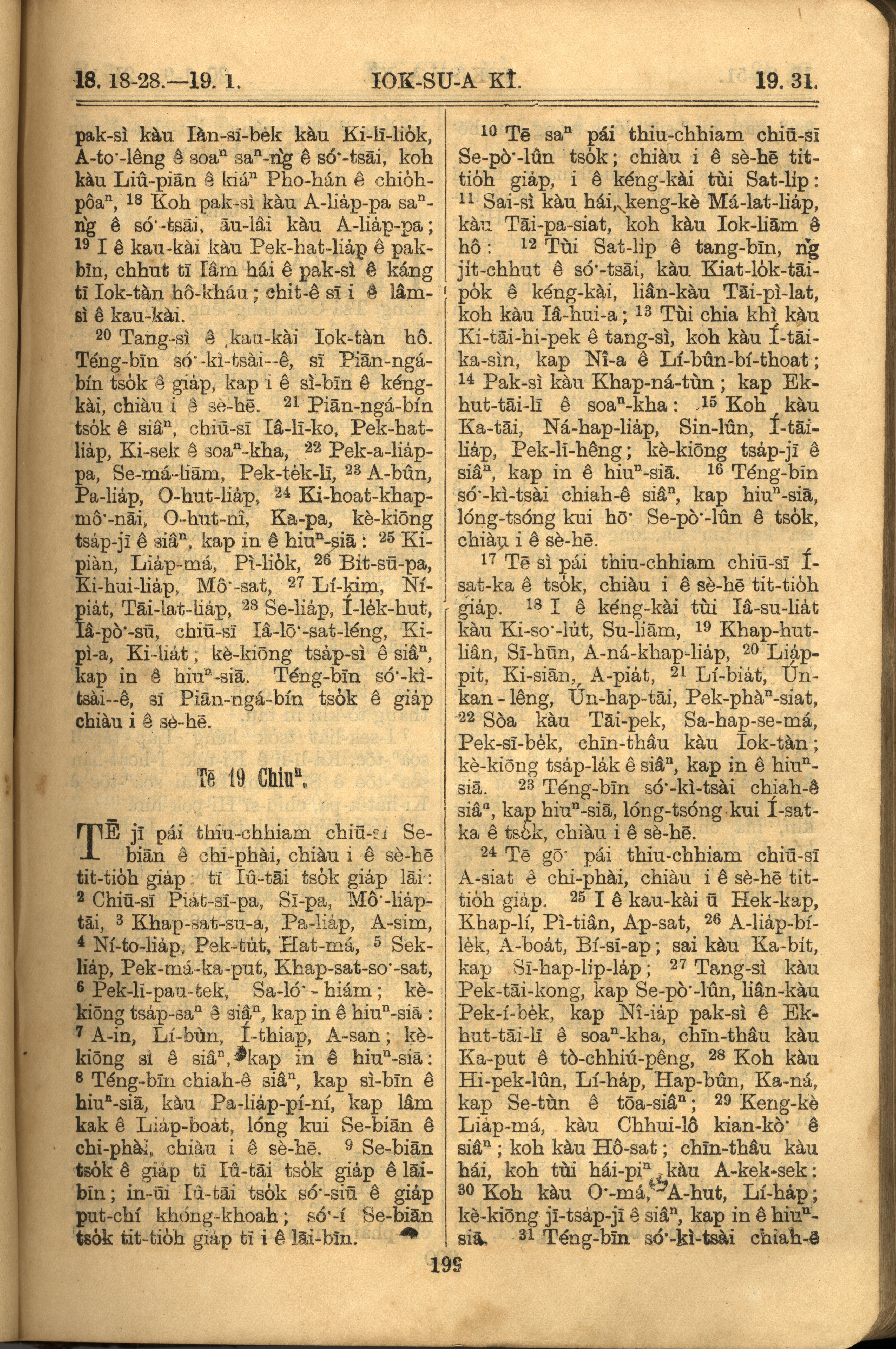 1921年羅馬字舊約全書 約書亞記 18 章 18 節到 19 章 31 節