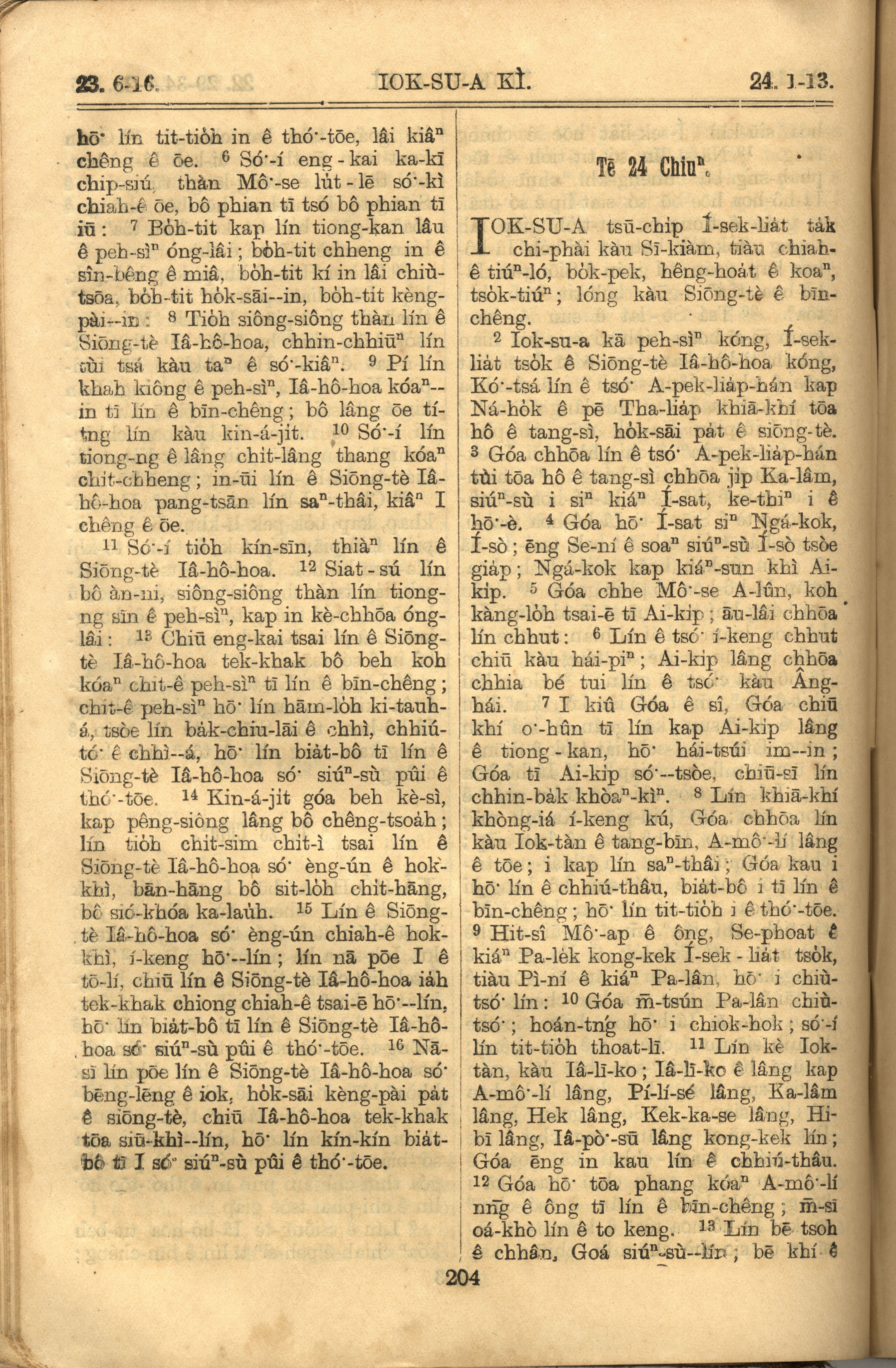 1921年羅馬字舊約全書 約書亞記 23 章 6 節到 24 章 13 節