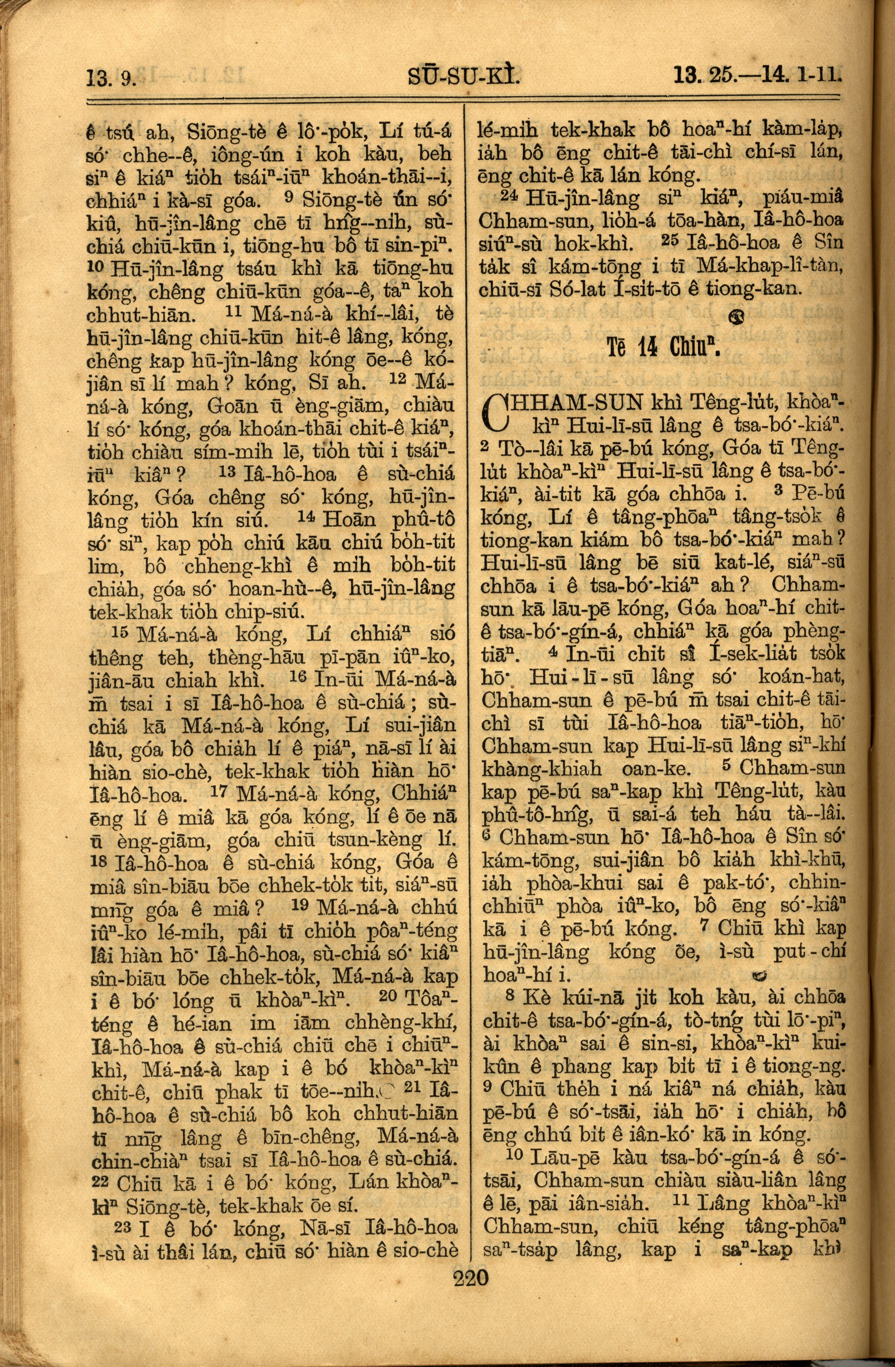 1921年羅馬字舊約全書 士師記 13 章 9 節到 14 章 11 節