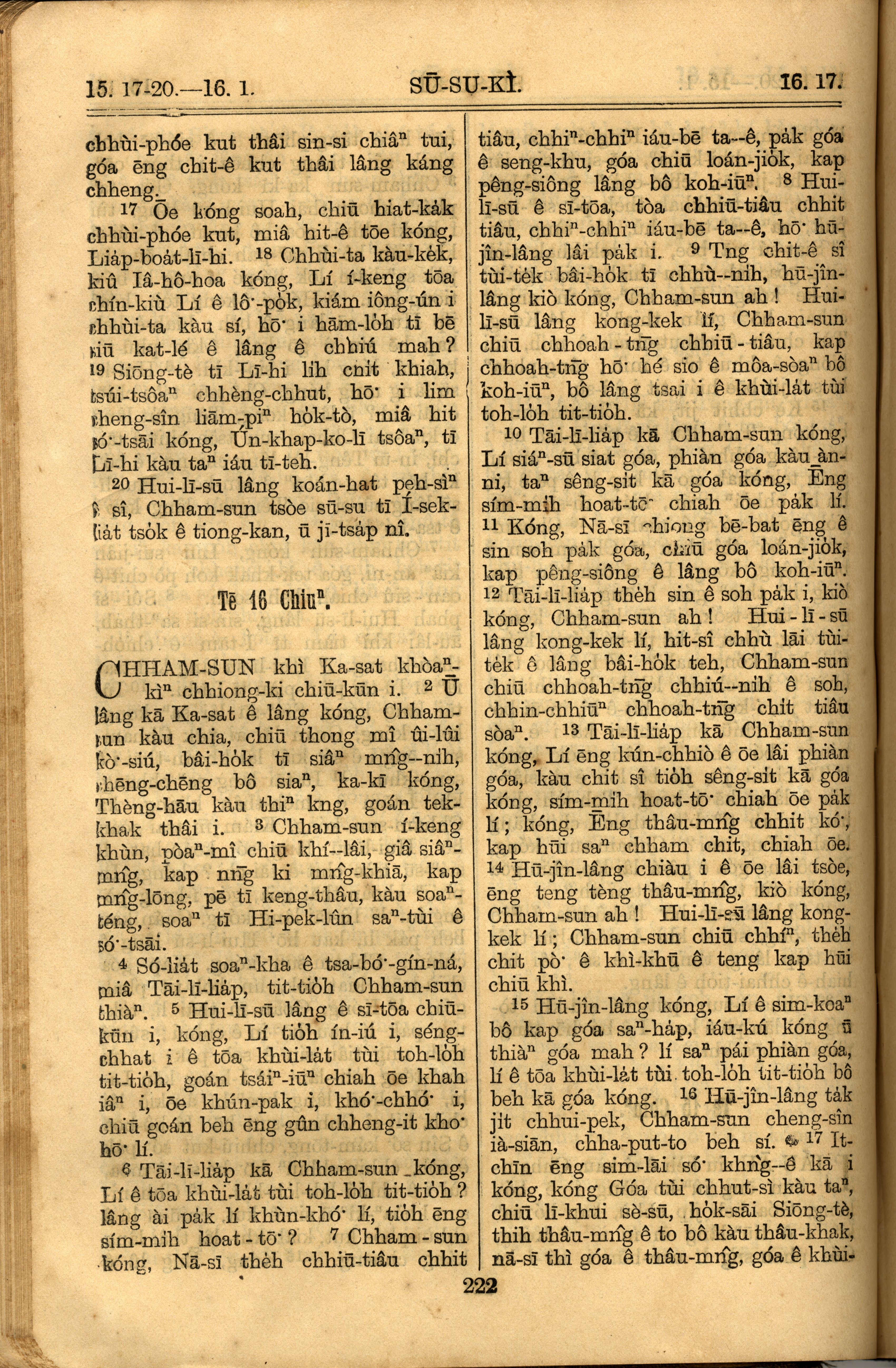 1921年羅馬字舊約全書 士師記 15 章 17 節到 16 章 17 節