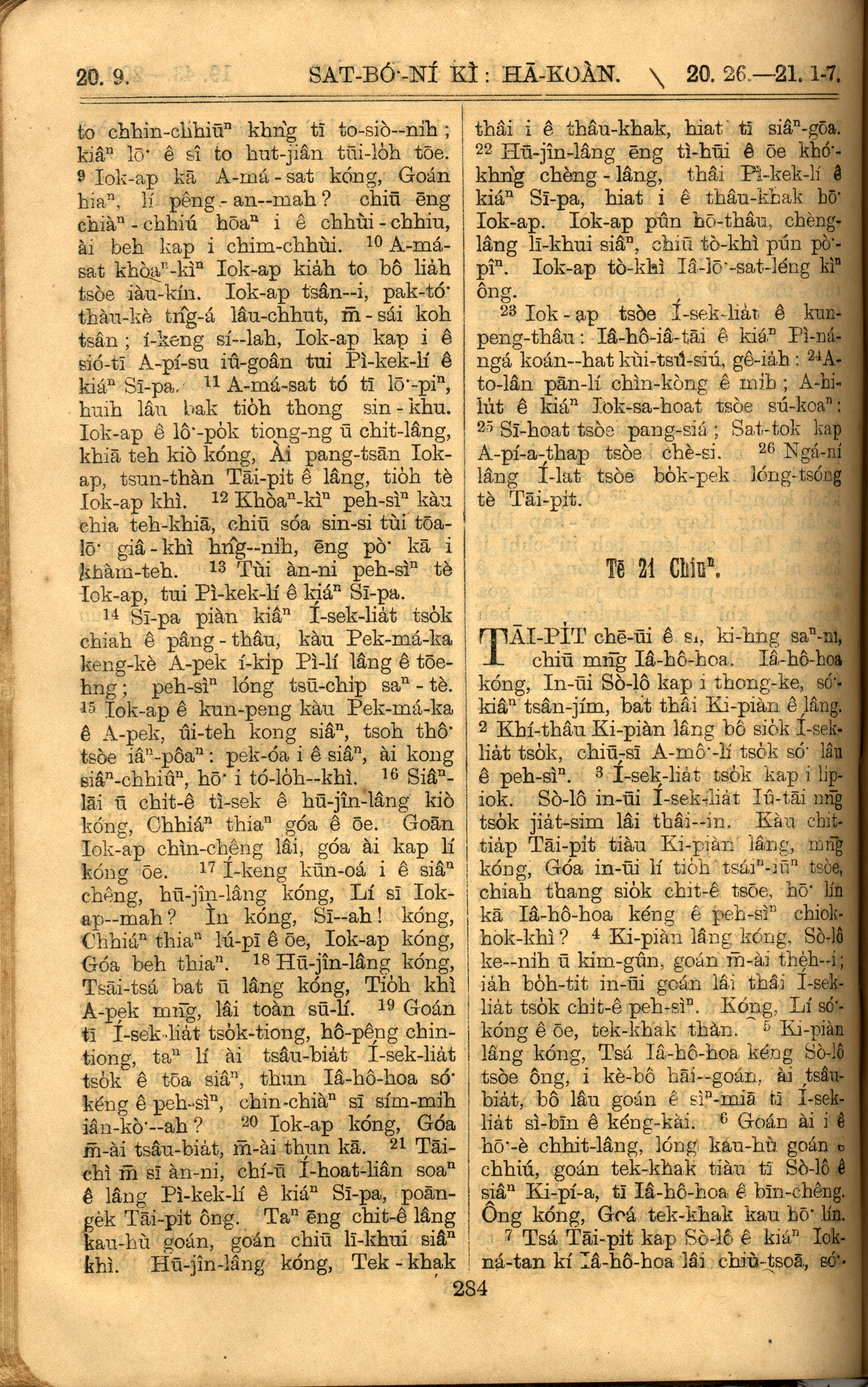 1921年羅馬字舊約全書 撒母耳記下 20 章 9 節到 21 章 7 節