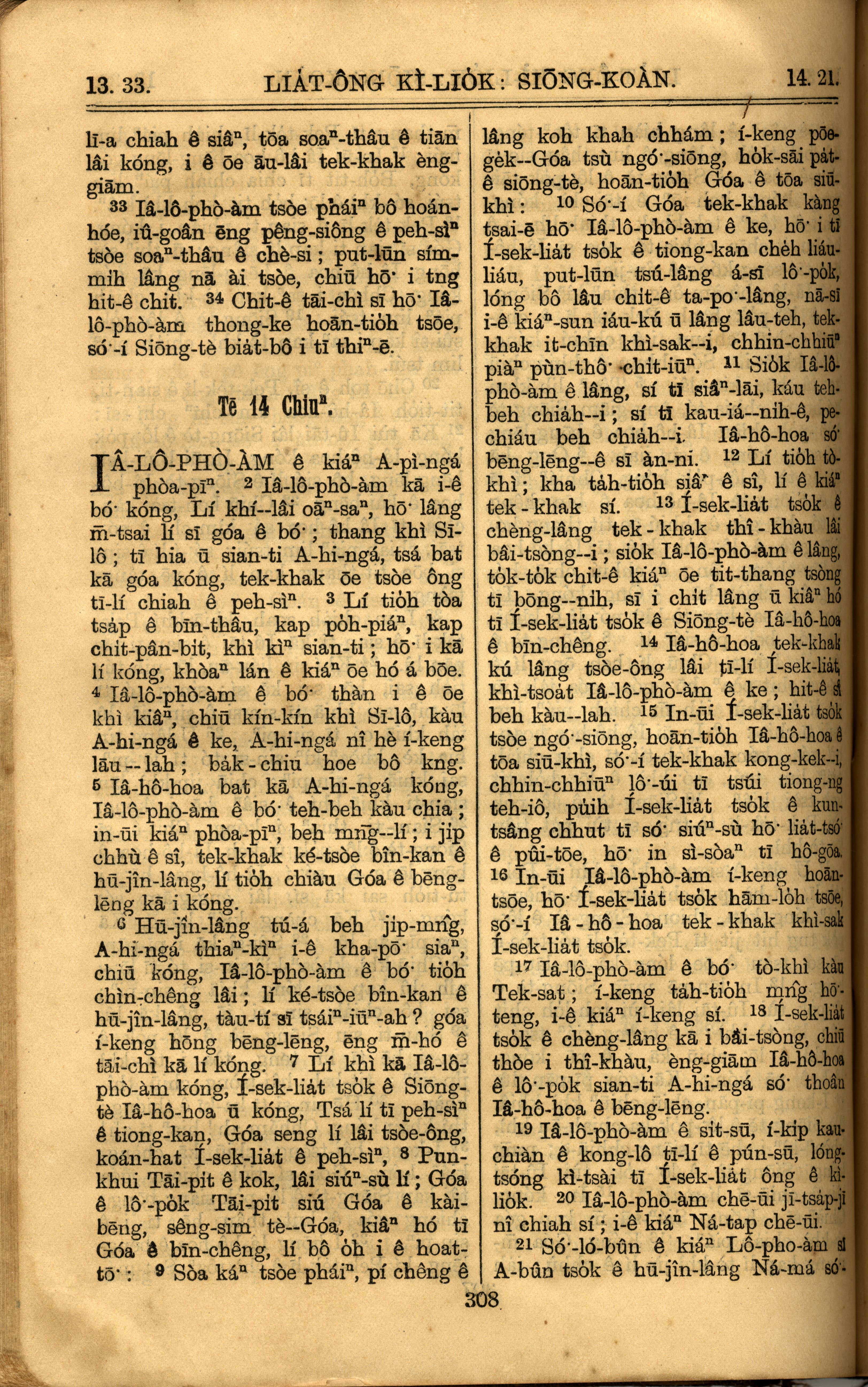 1921年羅馬字舊約全書 列王紀上 13 章 33 節到 14 章 21 節