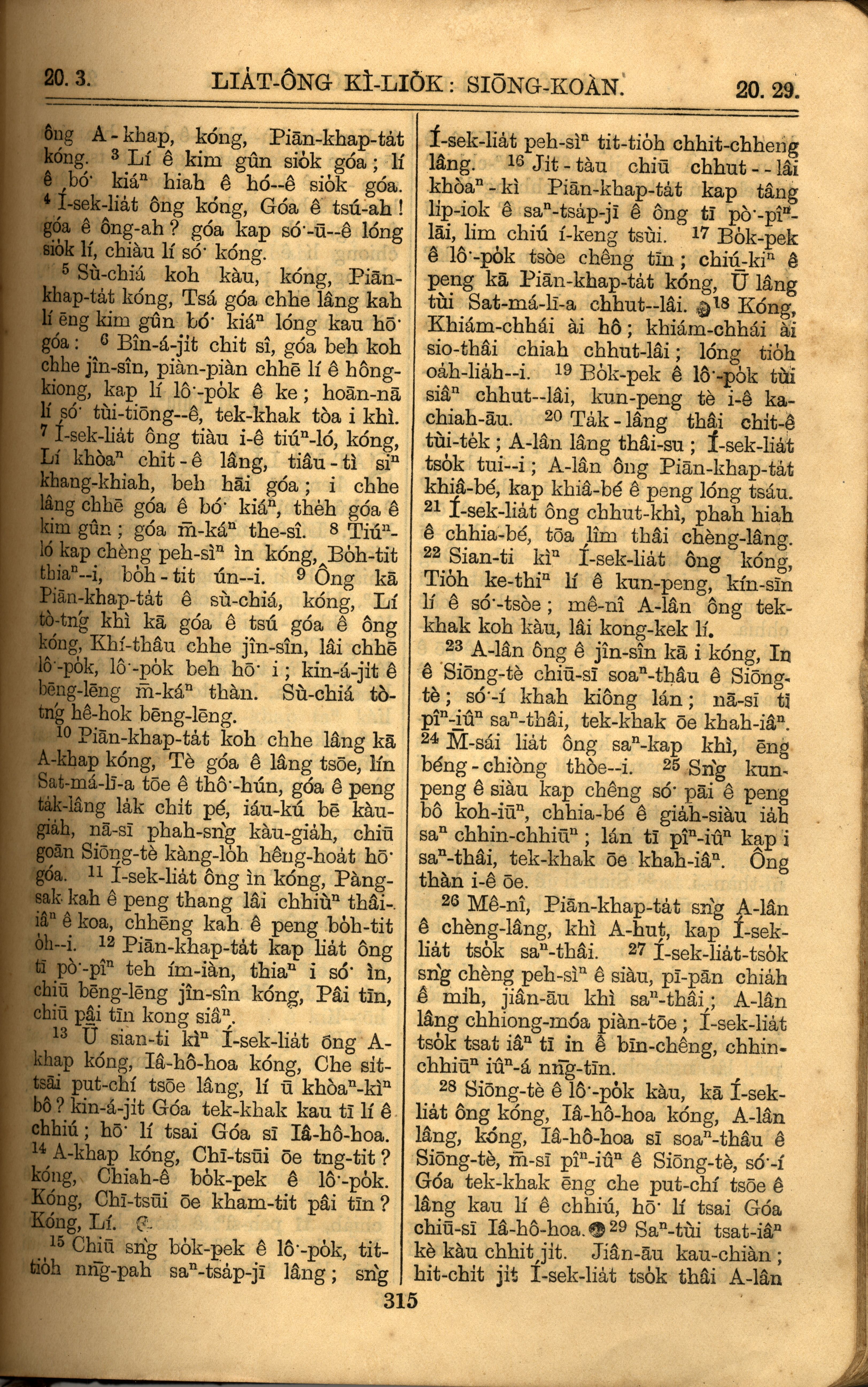 1921年羅馬字舊約全書 列王紀上 20 章 3 節到 20 章 29 節