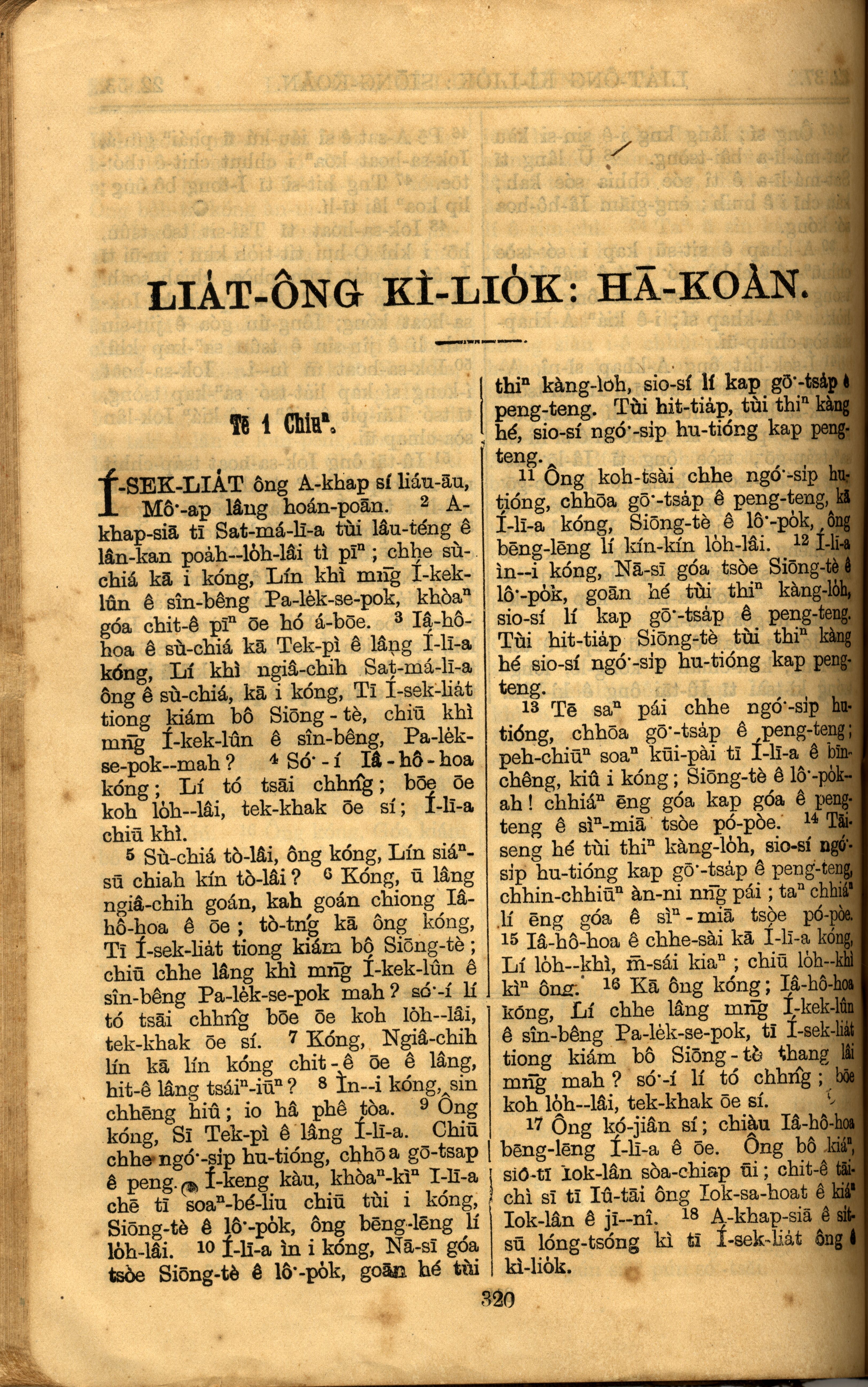 1921年羅馬字舊約全書 列王紀下 1 章 1 節到 1 章 18 節