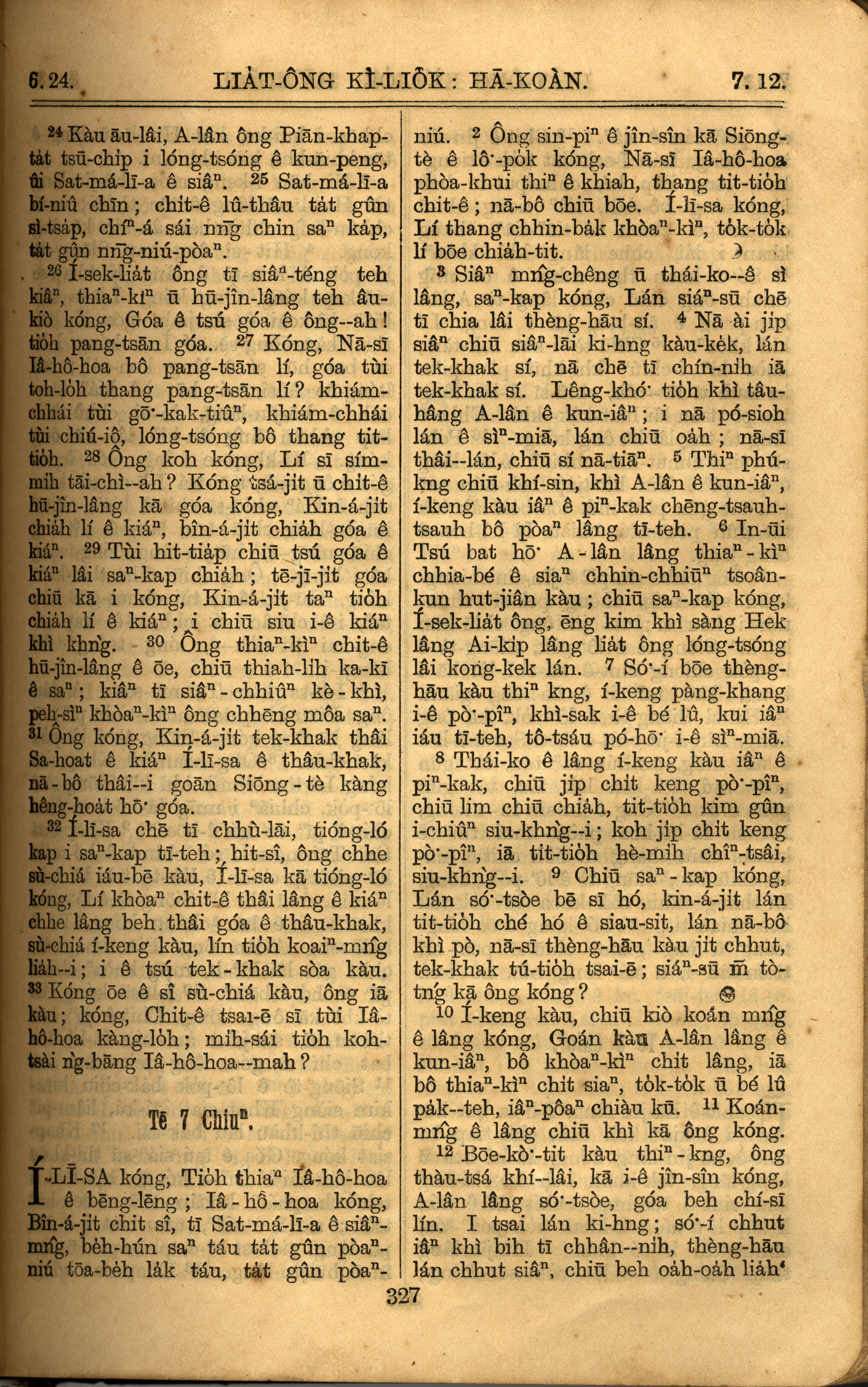 1921年羅馬字舊約全書 列王紀下 6 章 24 節到 7 章 12 節