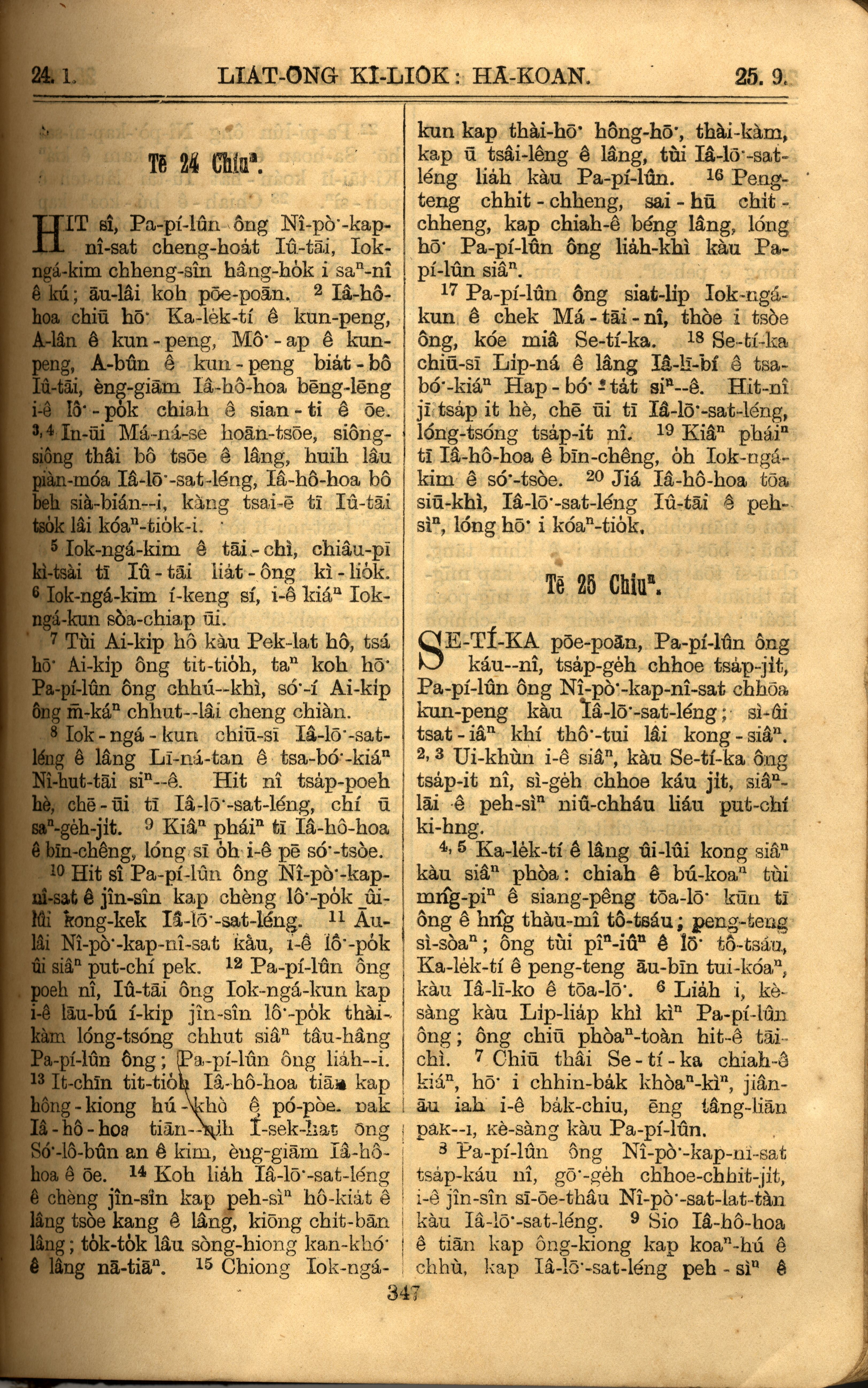 1921年羅馬字舊約全書 列王紀下 24 章 1 節到 25 章 9 節