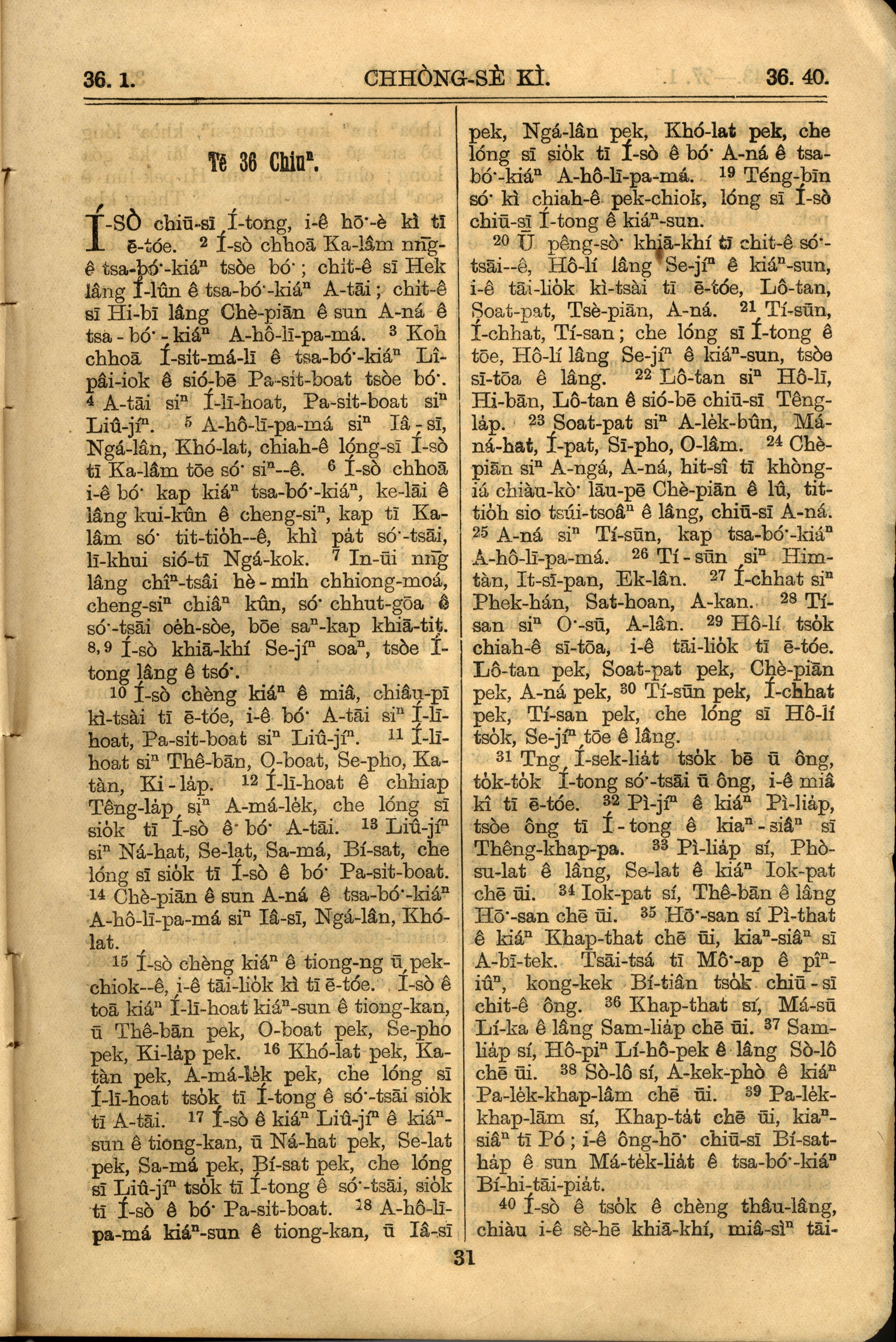 1921年羅馬字舊約全書 創世記 36 章 1 節到 36 章 40 節