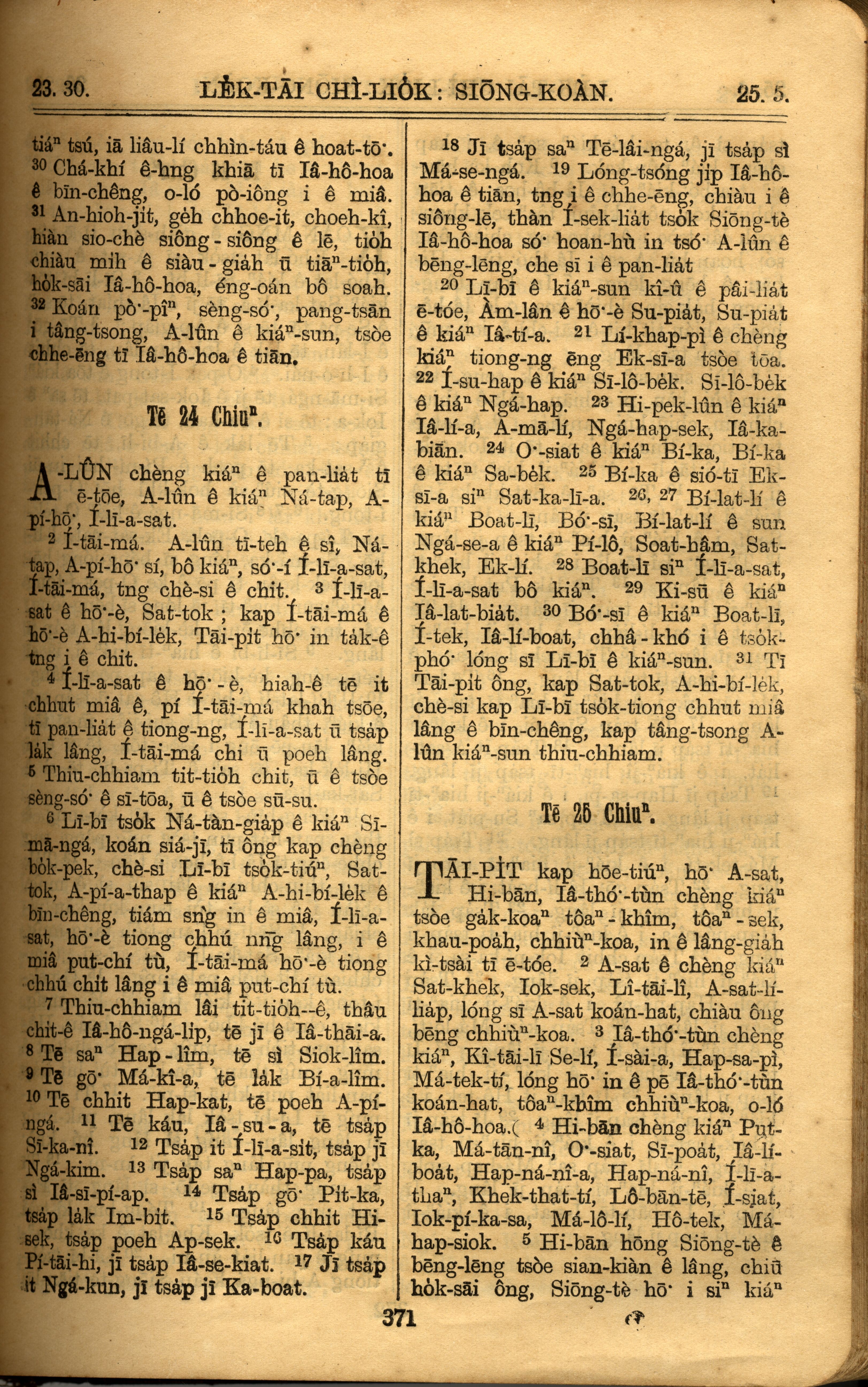 1921年羅馬字舊約全書 歷代志上 23 章 30 節到 25 章 5 節