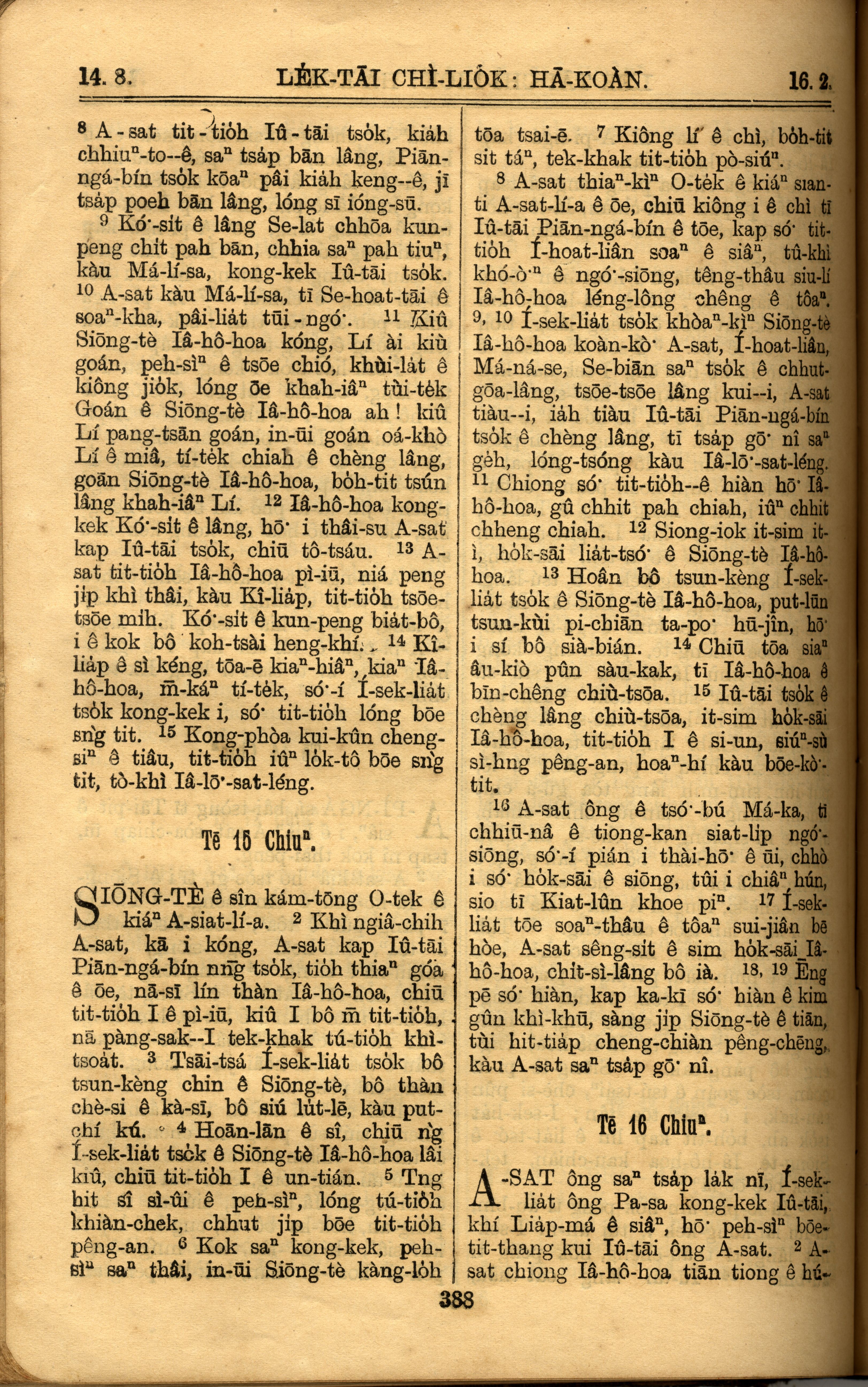 1921年羅馬字舊約全書 歷代志下 14 章 8 節到 16 章 2 節