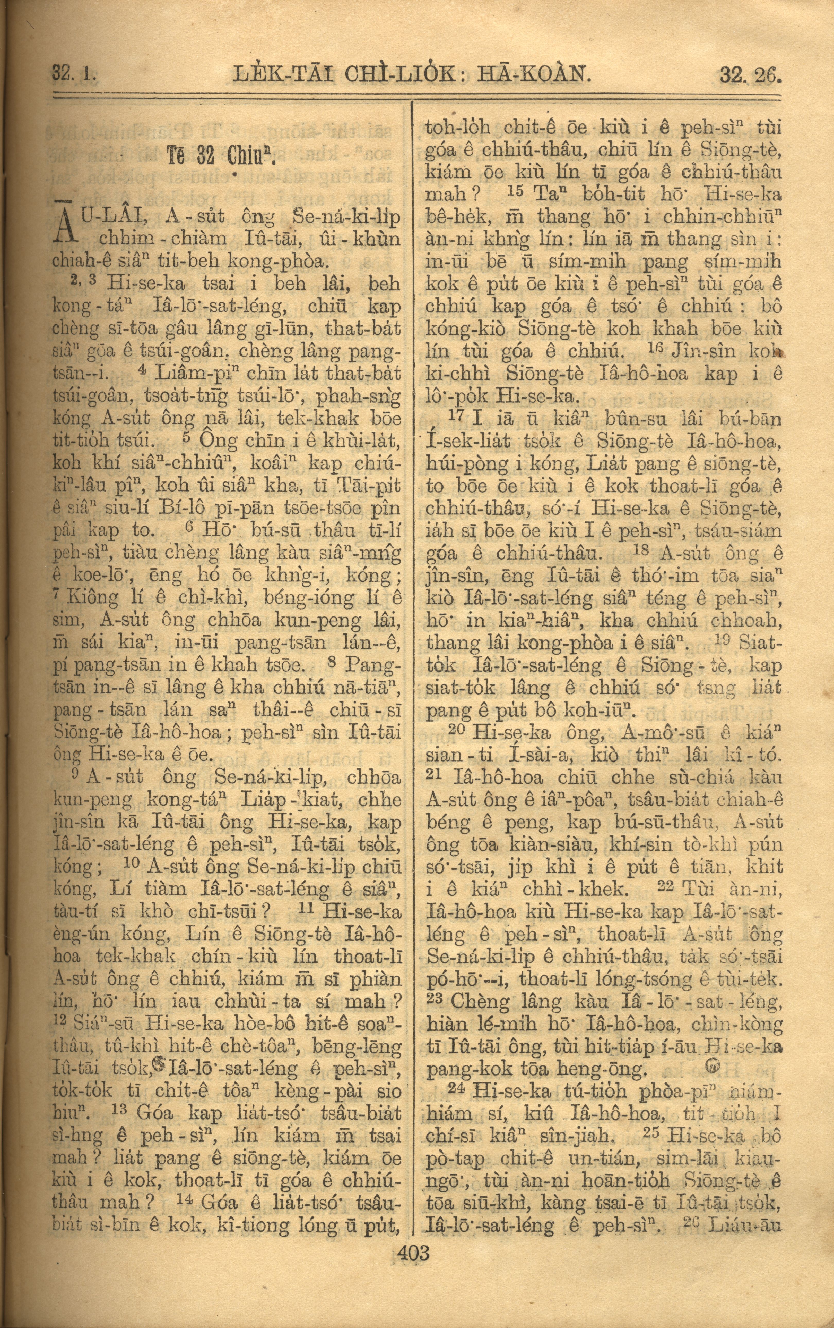 1921年羅馬字舊約全書 歷代志下 32 章 1 節到 32 章 26 節