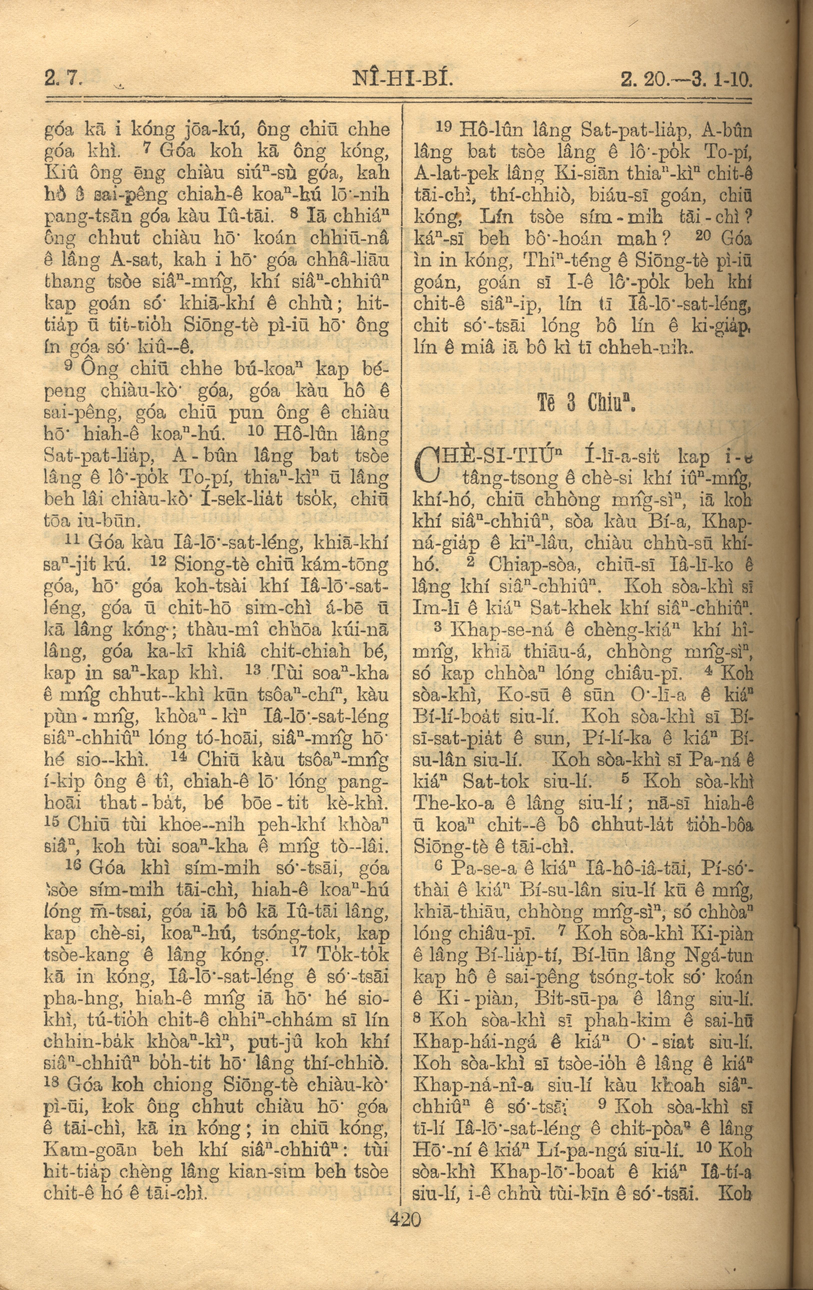 1921年羅馬字舊約全書 尼希米記 2 章 7 節到 3 章 10 節