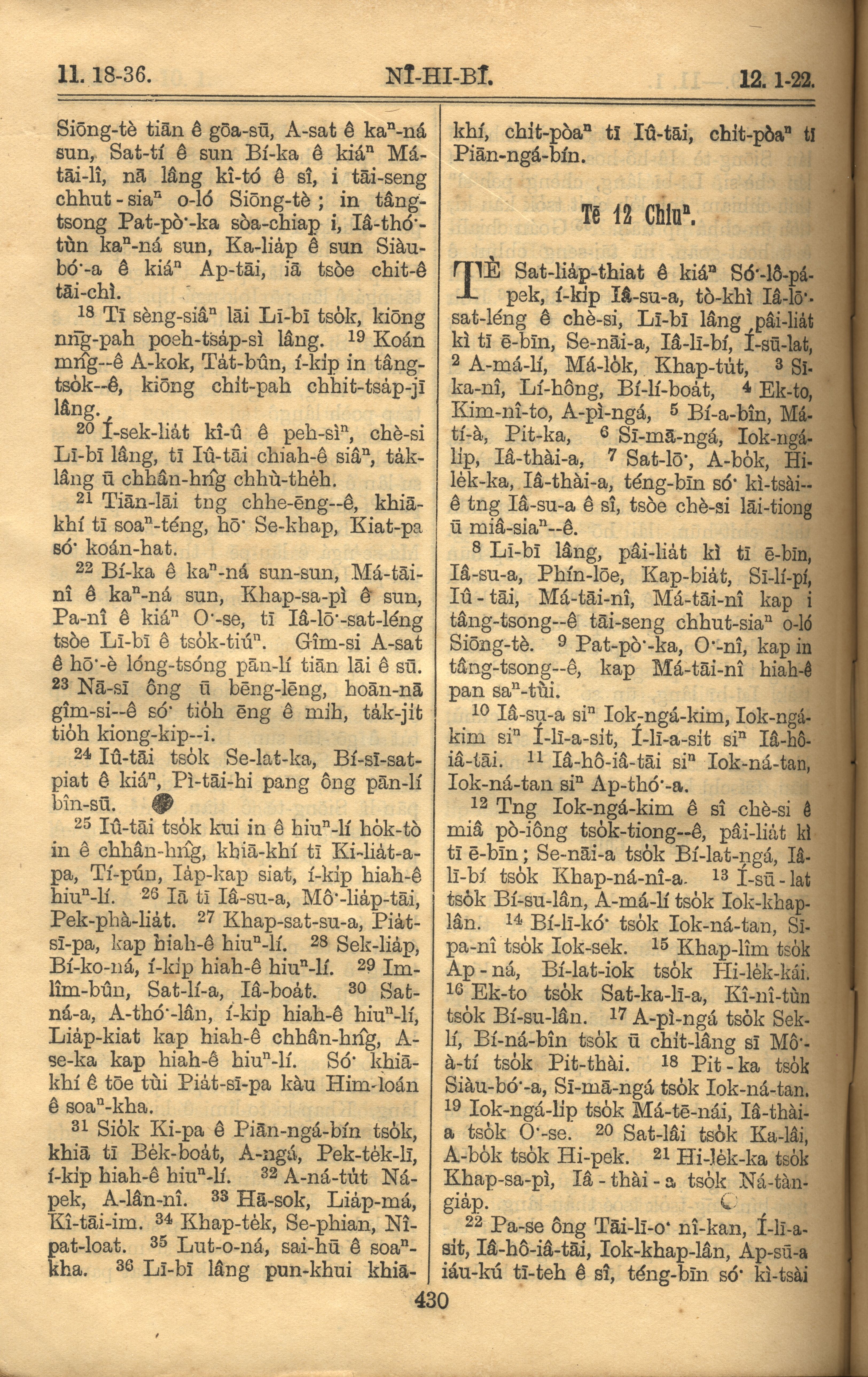 1921年羅馬字舊約全書 尼希米記 11 章 18 節到 12 章 22 節