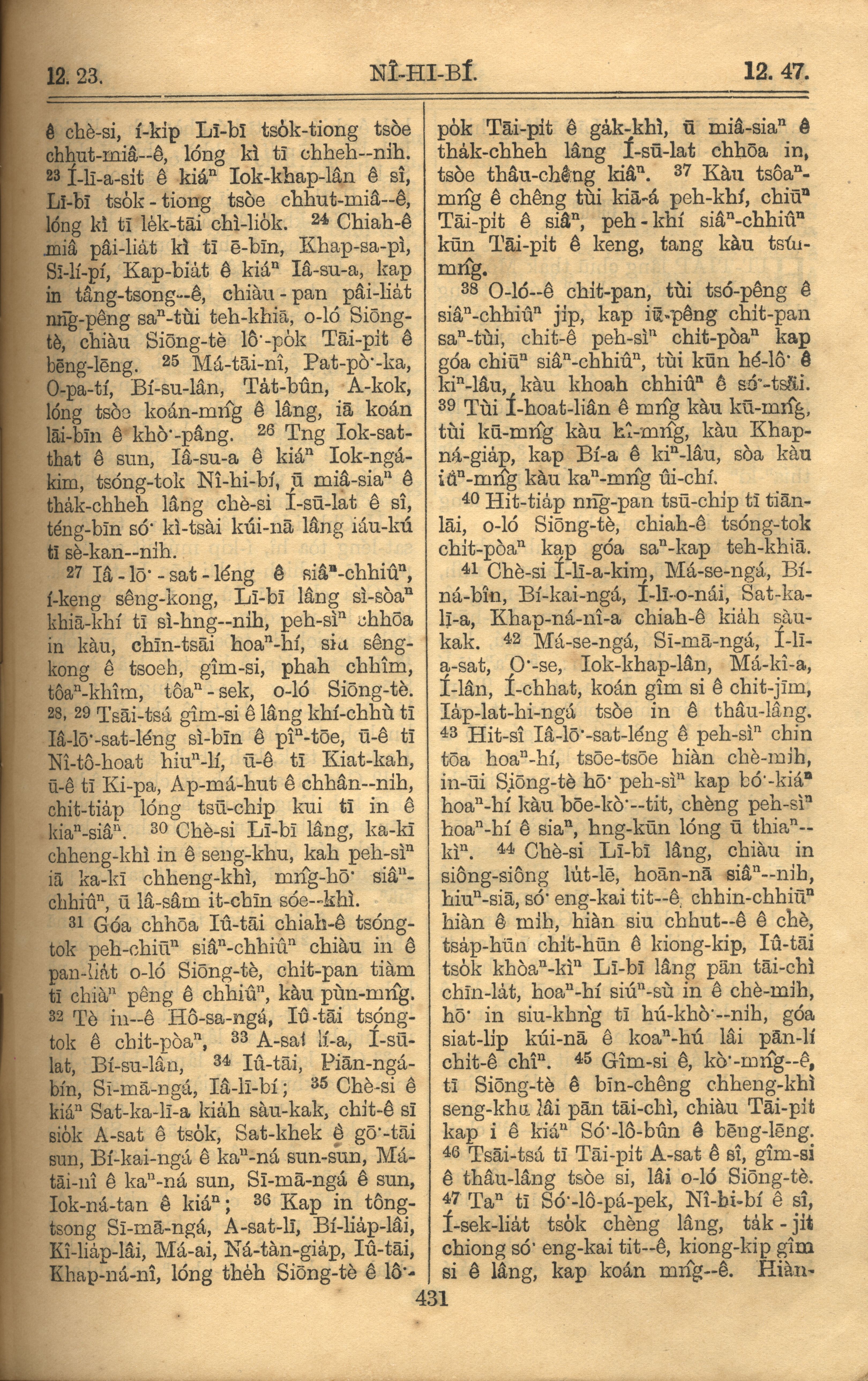 1921年羅馬字舊約全書 尼希米記 12 章 23 節到 12 章 47 節
