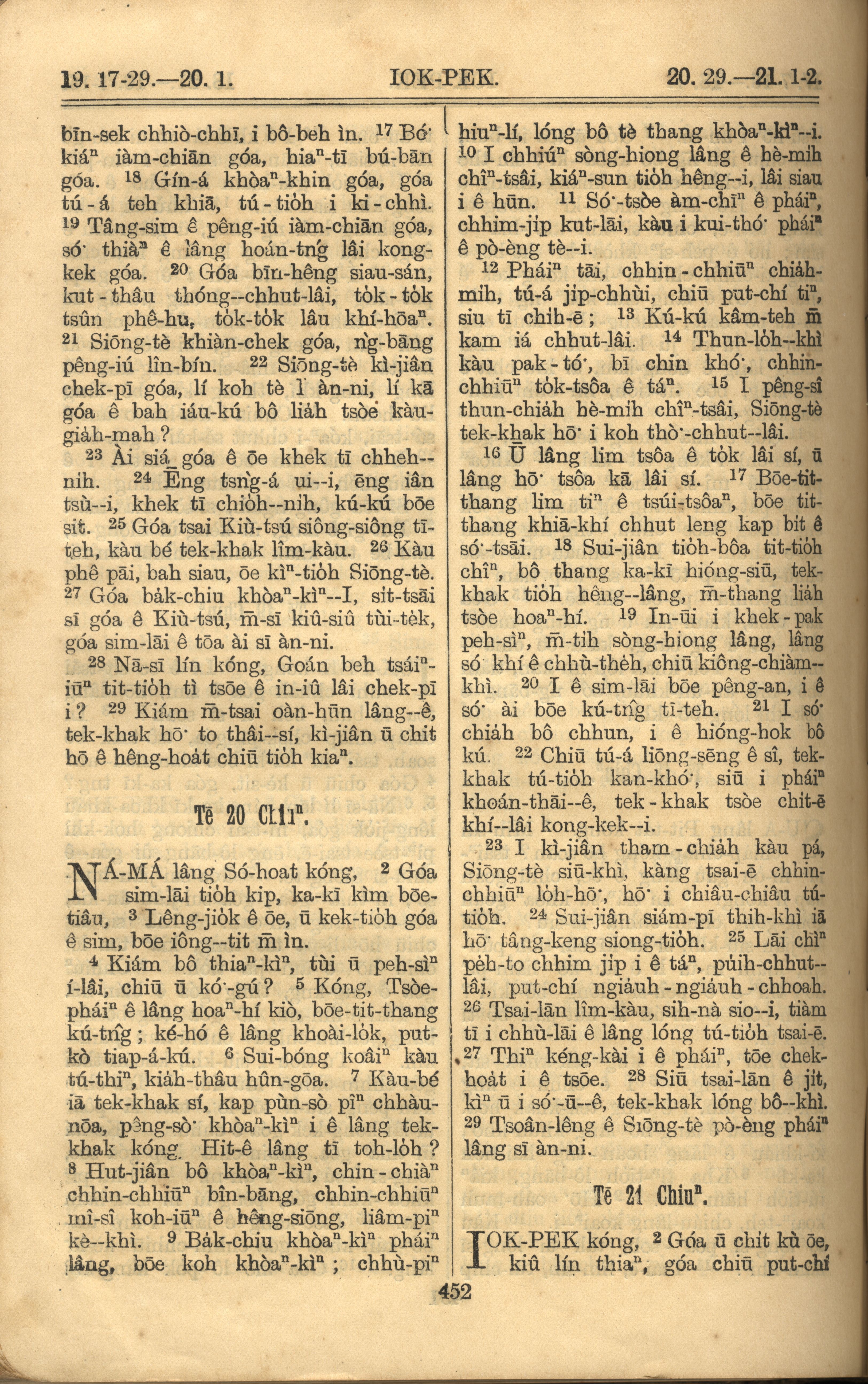 1921年羅馬字舊約全書 約伯記 19 章 17 節到 21 章 2 節