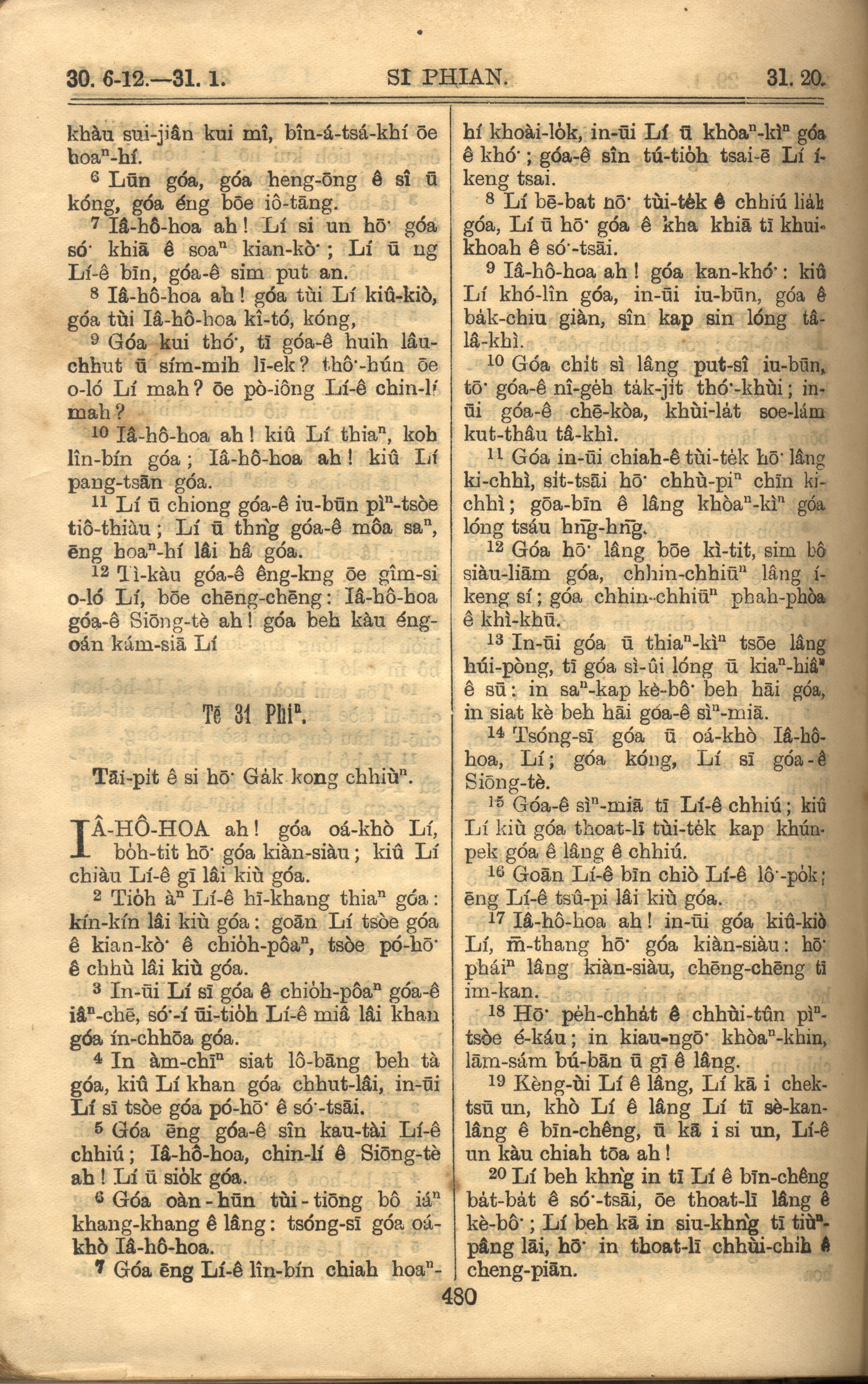 1921年羅馬字舊約全書 詩篇 30 章 6 節到 31 章 20 節