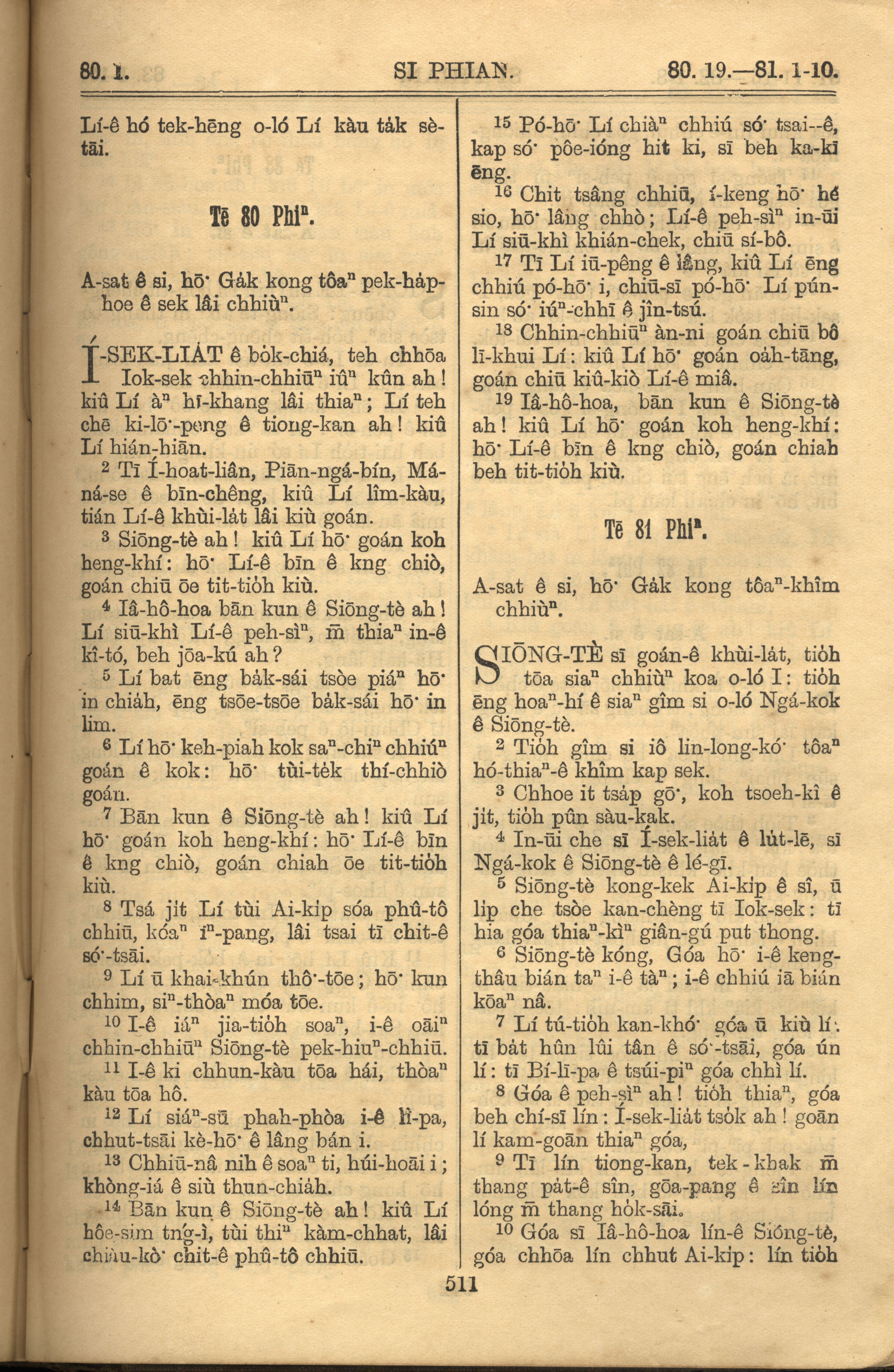 1921年羅馬字舊約全書 詩篇 80 章 1 節到 81 章 10 節