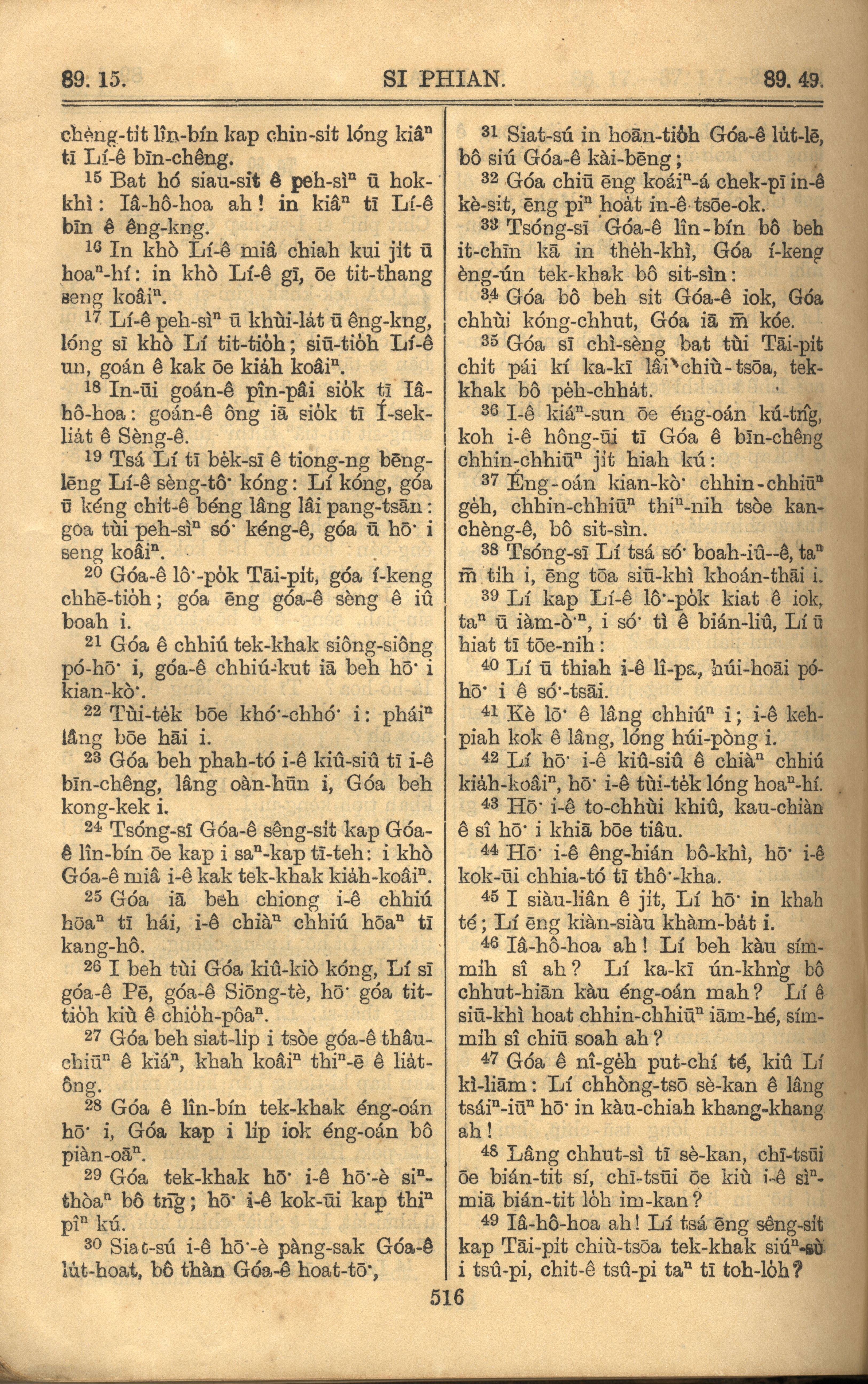 1921年羅馬字舊約全書 詩篇 89 章 15 節到 89 章 49 節