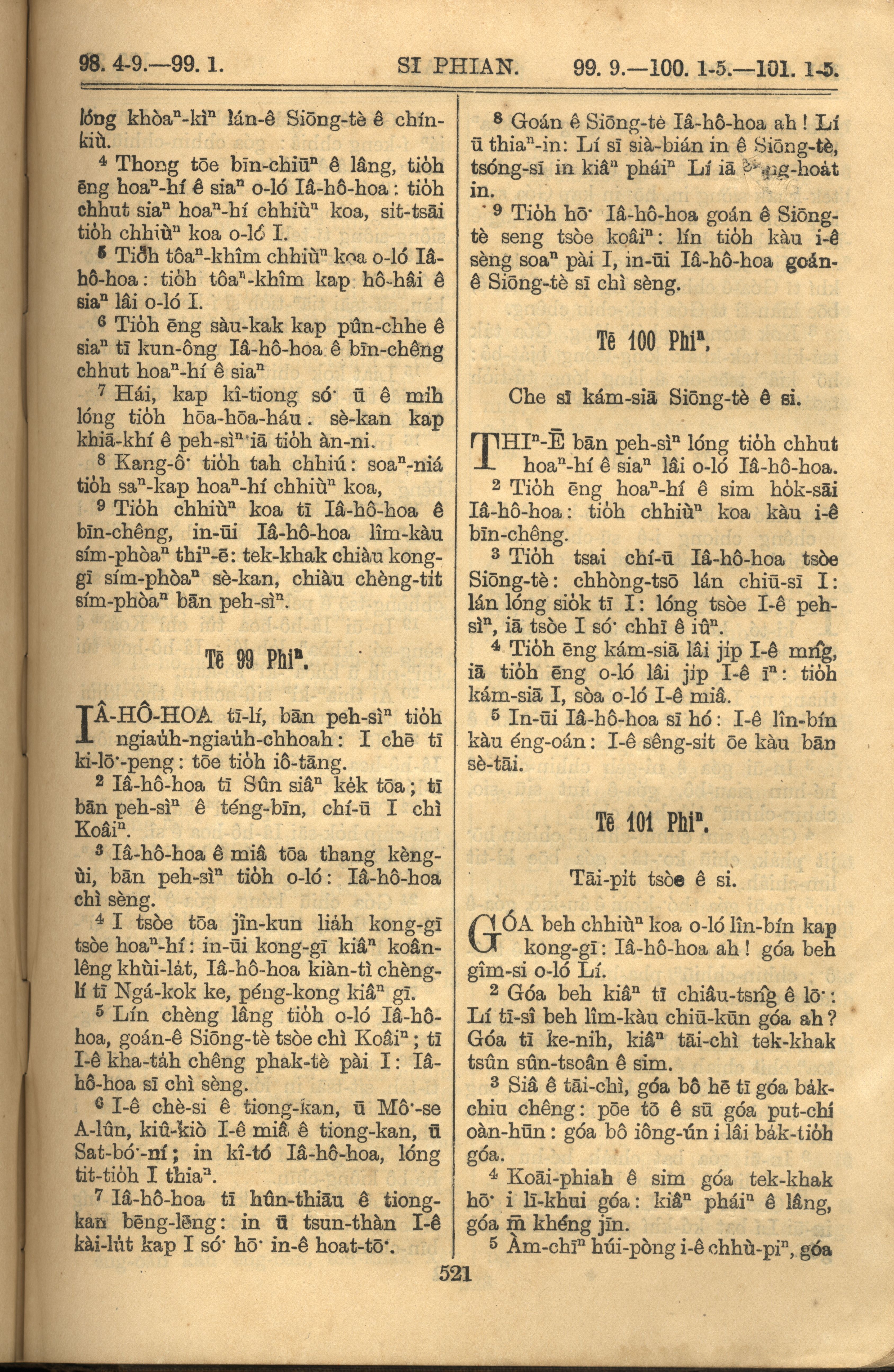 1921年羅馬字舊約全書 詩篇 98 章 4 節到 101 章 5 節