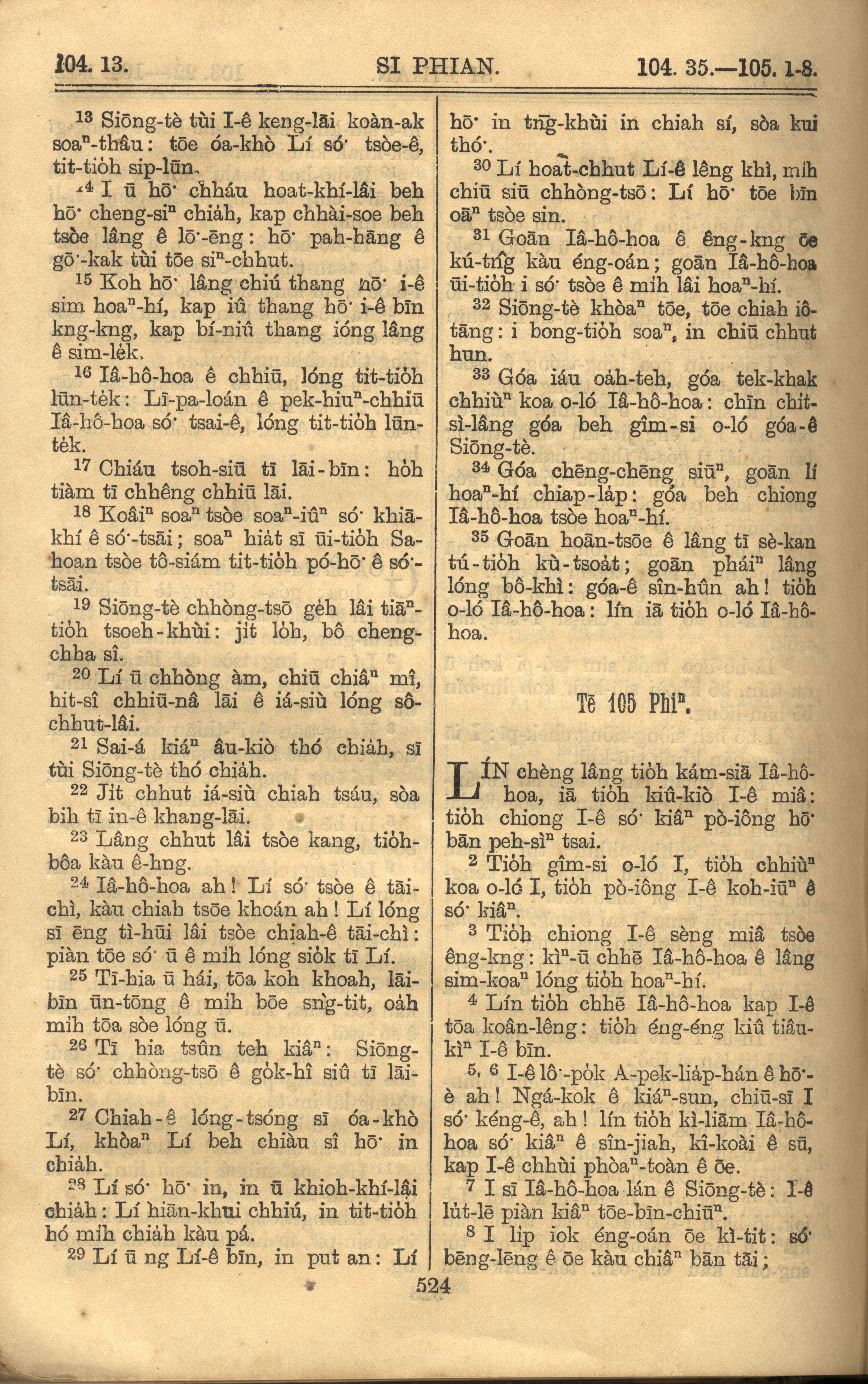 1921年羅馬字舊約全書 詩篇 104 章 13 節到 105 章 8 節