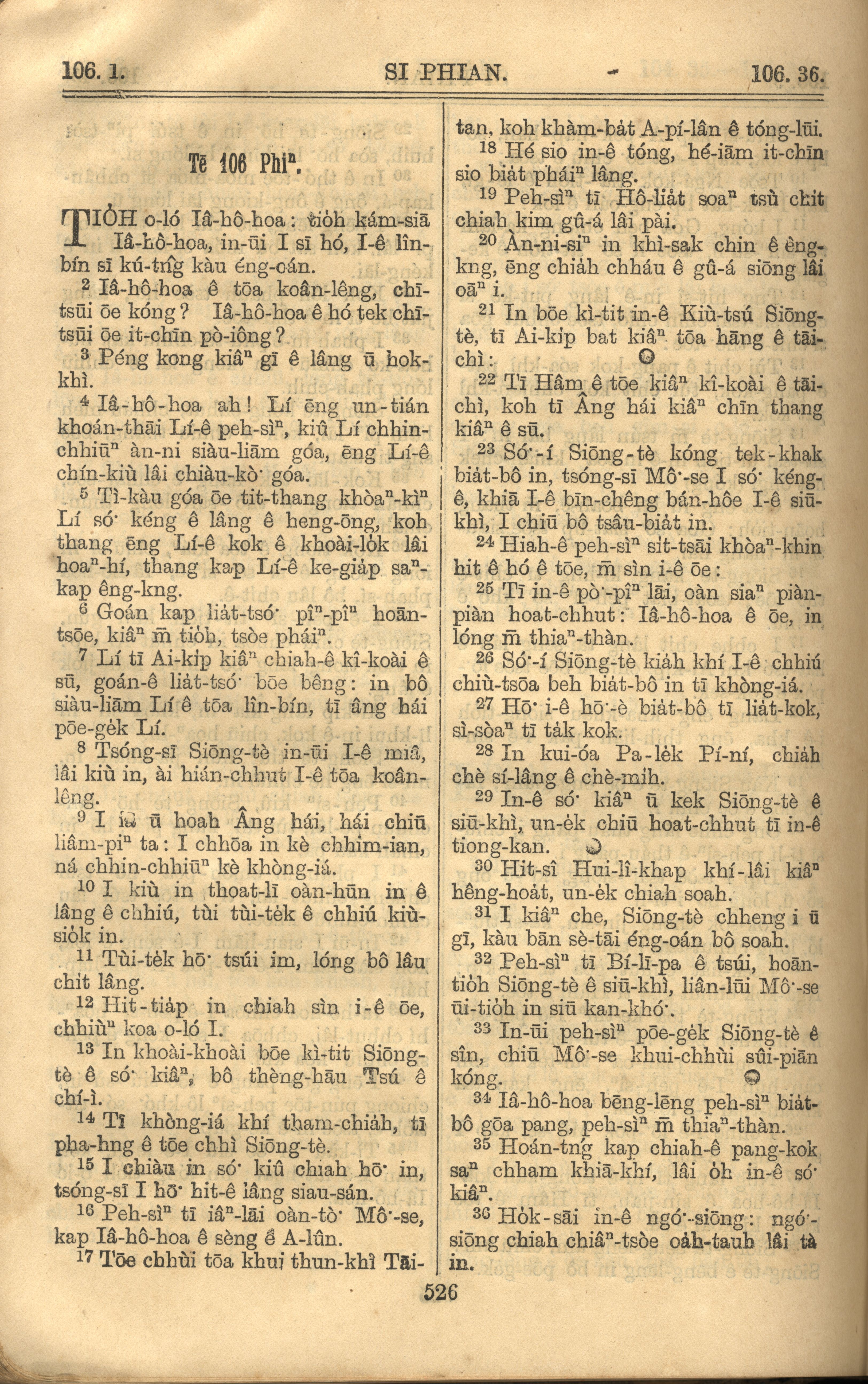 1921年羅馬字舊約全書 詩篇 106 章 1 節到 106 章 36 節
