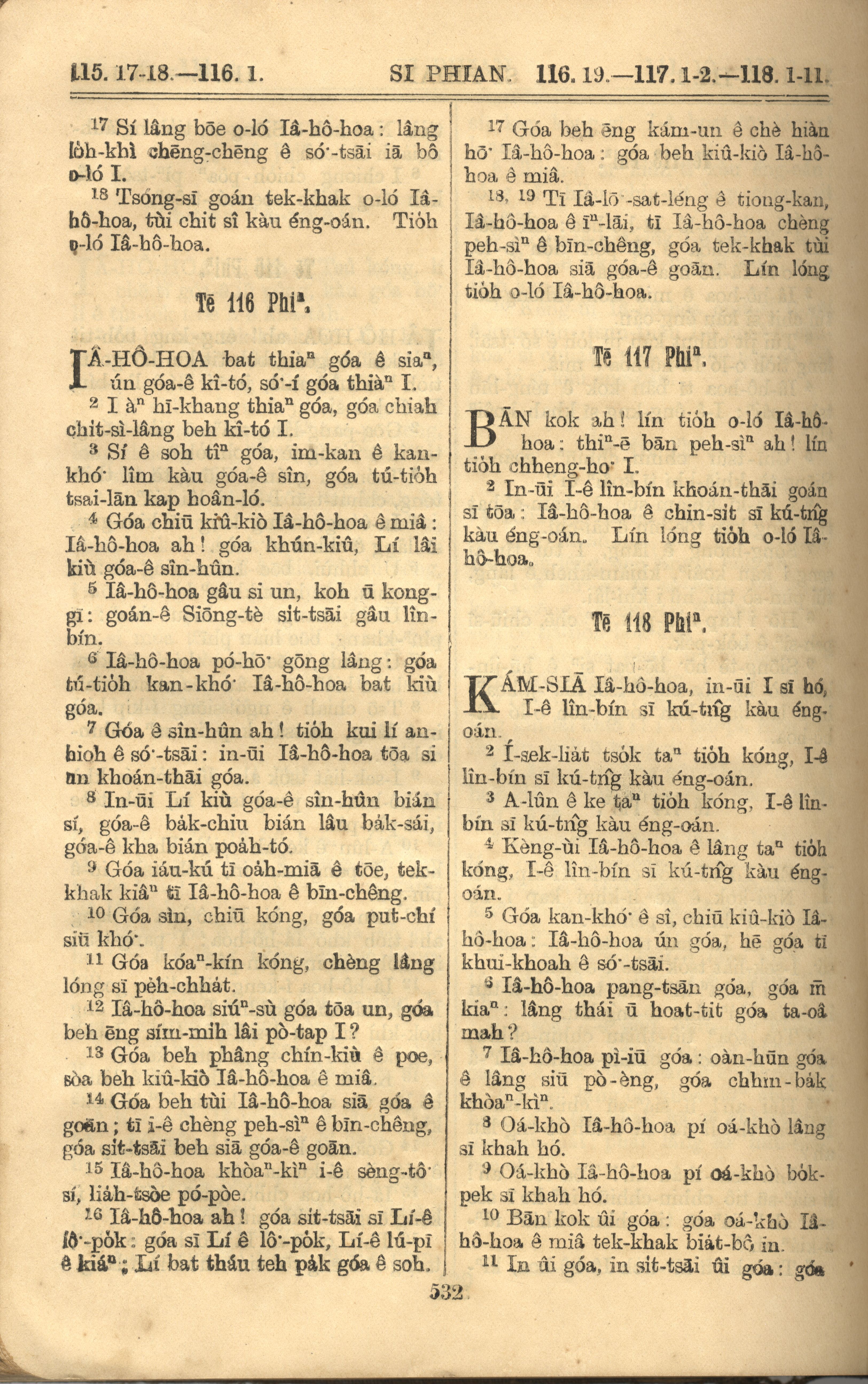 1921年羅馬字舊約全書 詩篇 115 章 17 節到 118 章 11 節