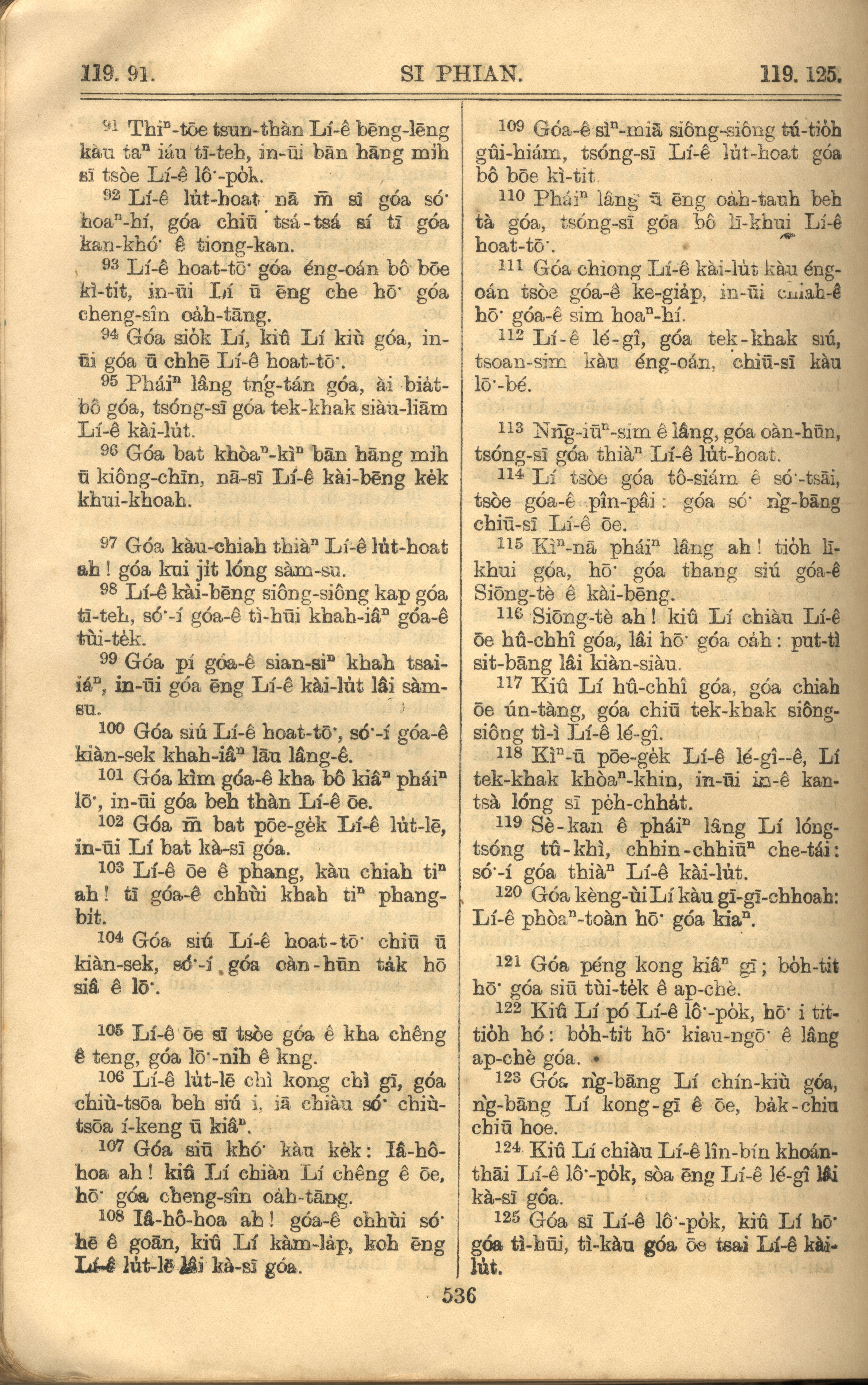 1921年羅馬字舊約全書 詩篇 119 章 91 節到 119 章 125 節