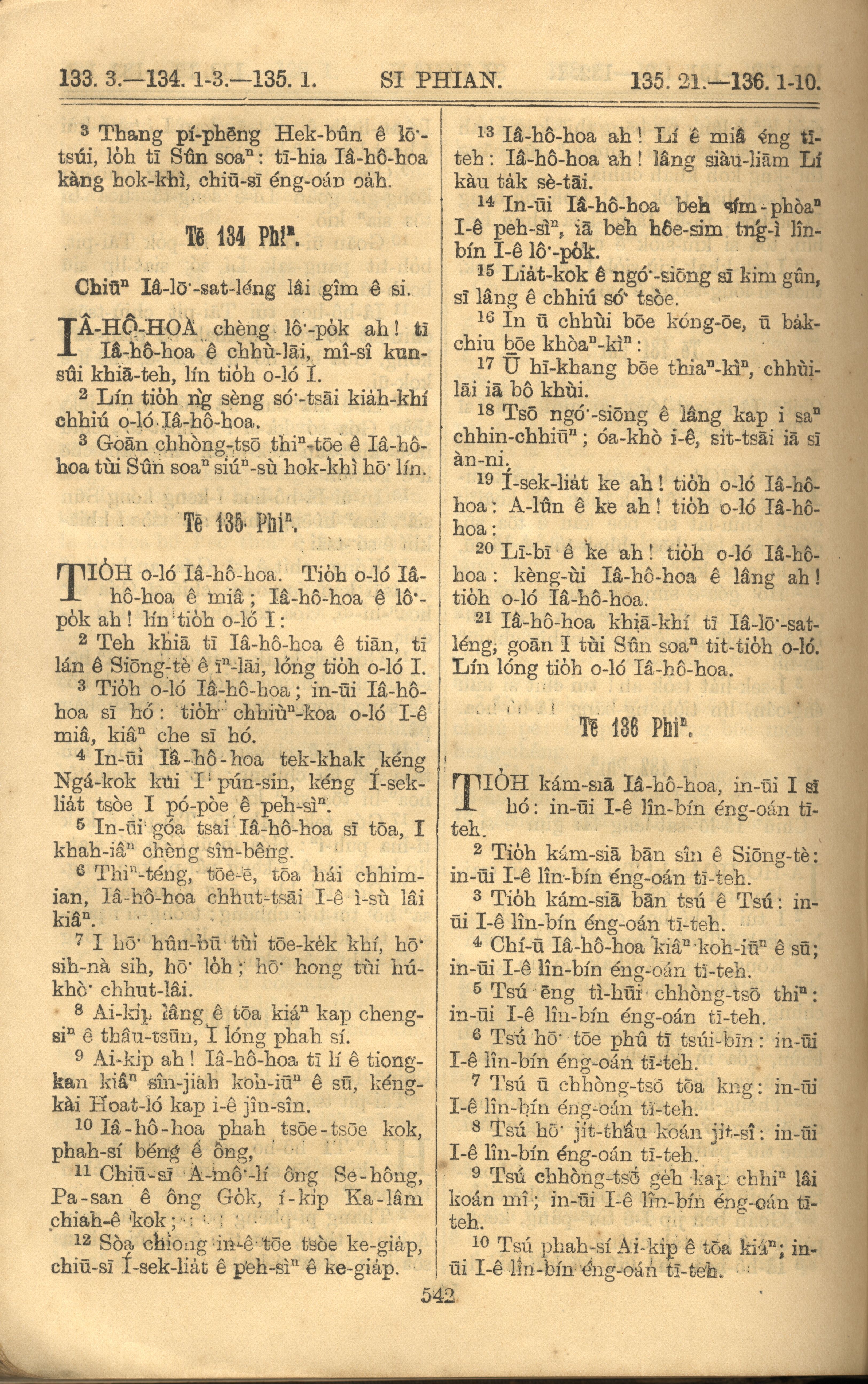 1921年羅馬字舊約全書 詩篇 133 章 3 節到 136 章 10 節