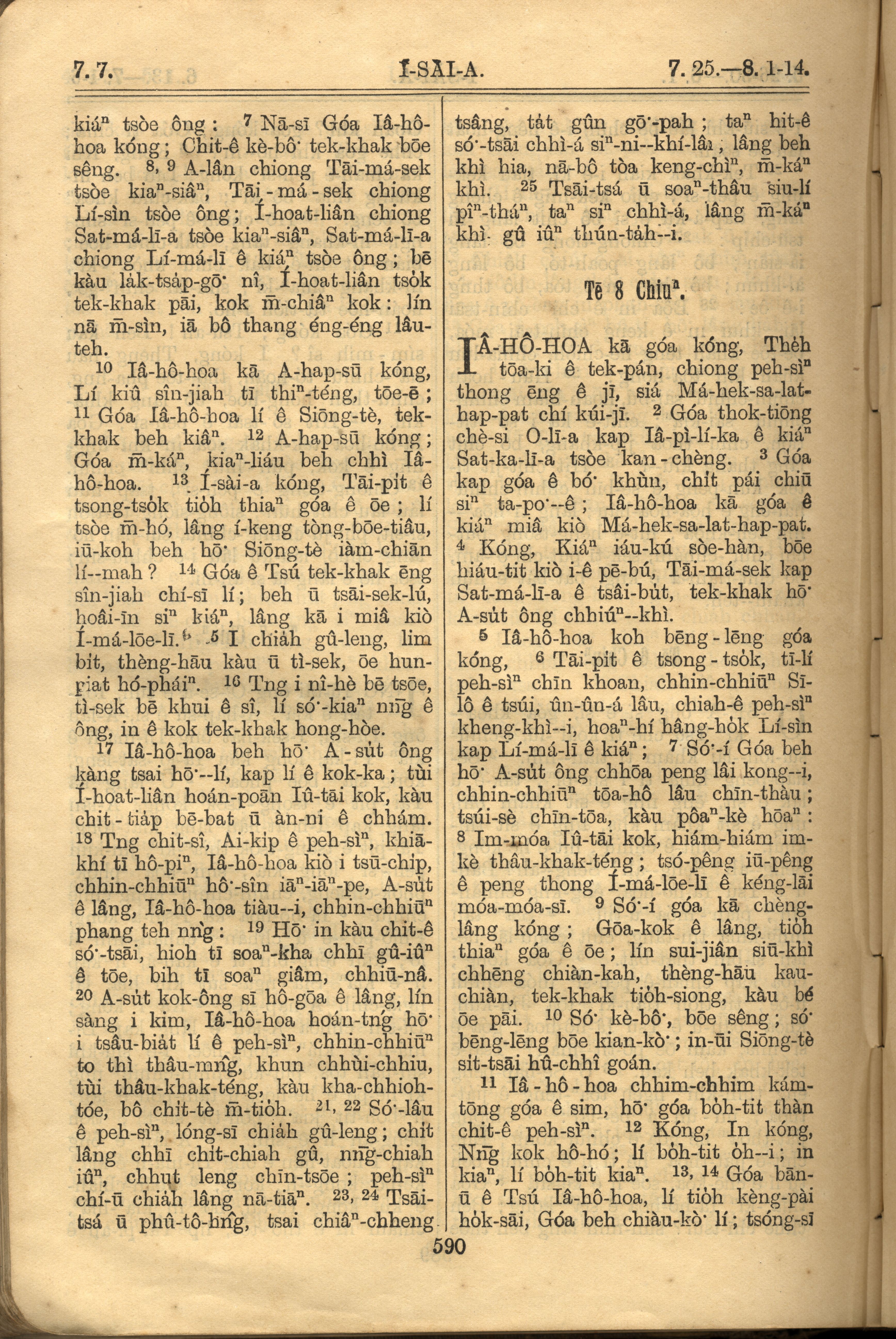 1921年羅馬字舊約全書 以賽亞書 7 章 7 節到 8 章 14 節