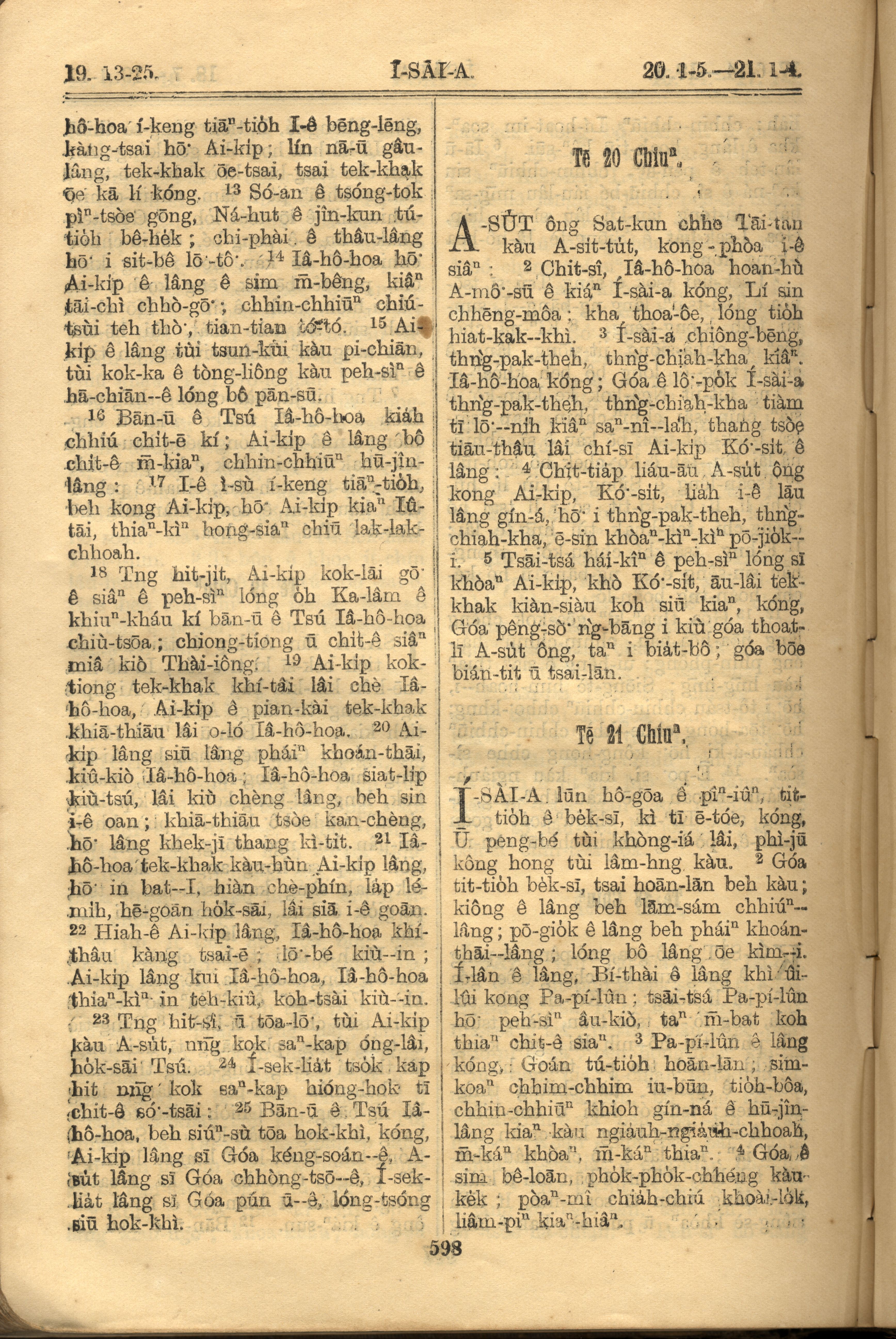 1921年羅馬字舊約全書 以賽亞書 19 章 13 節到 21 章 4 節