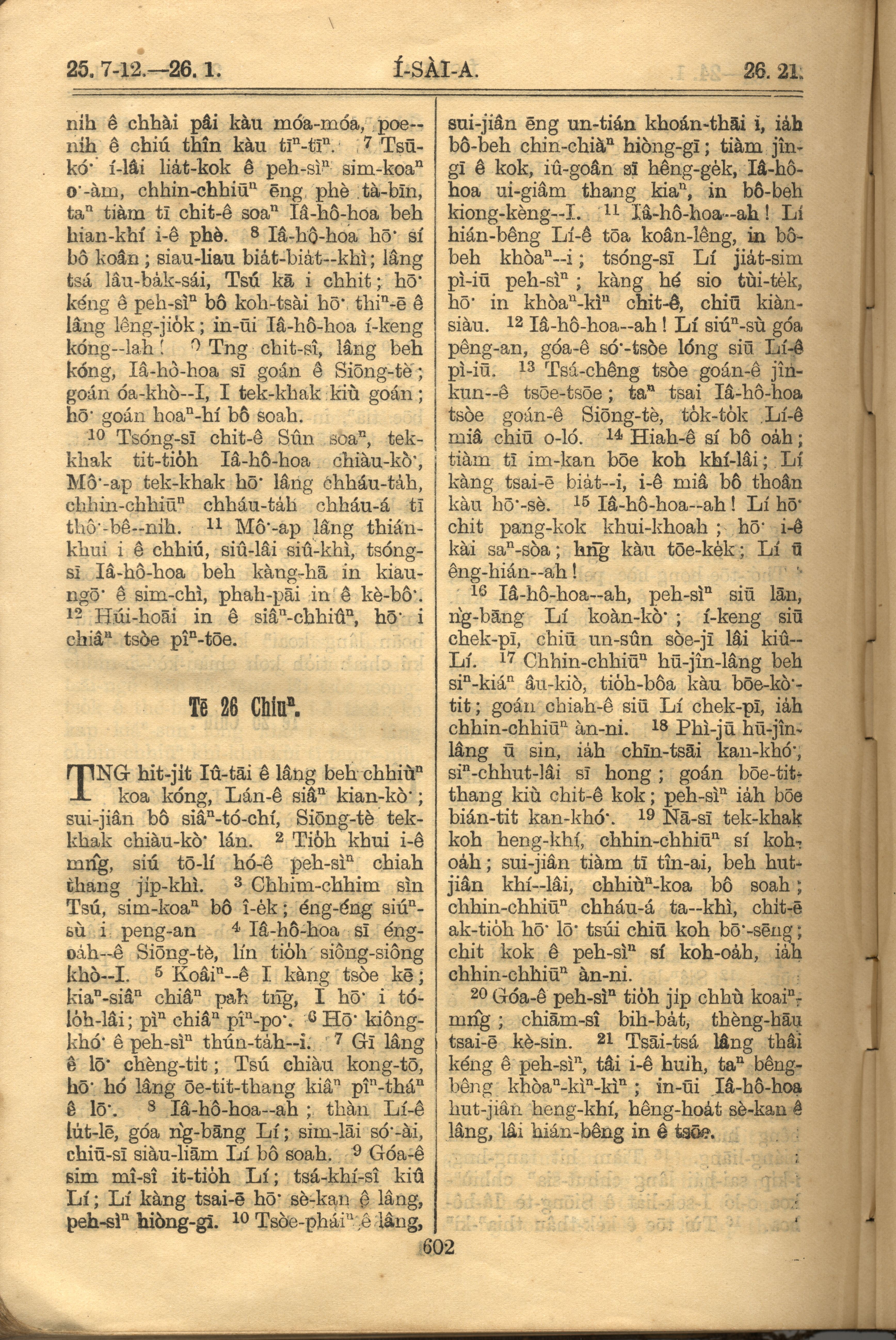 1921年羅馬字舊約全書 以賽亞書 25 章 7 節到 26 章 21 節
