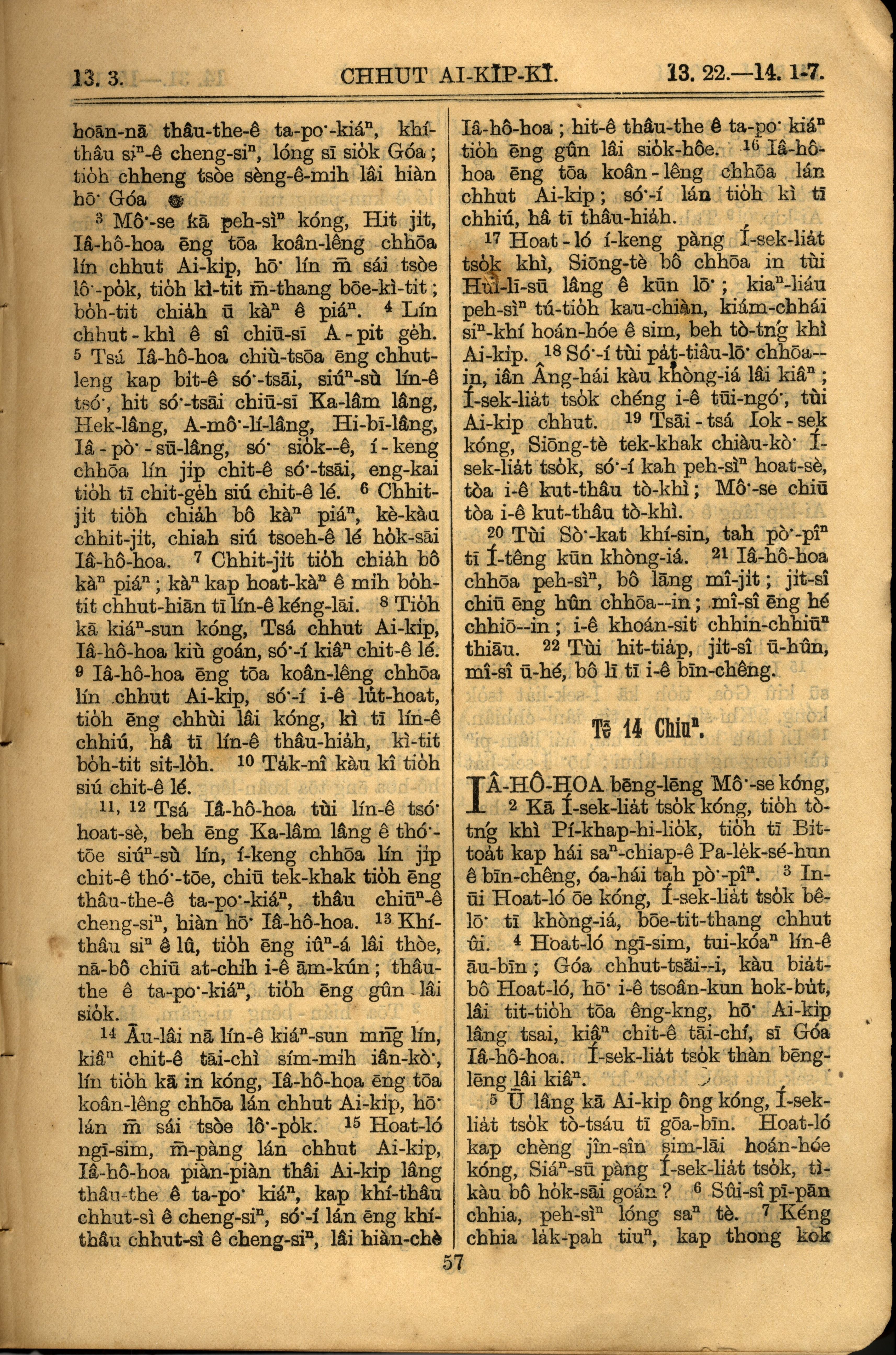 1921年羅馬字舊約全書 出埃及記 13 章 3 節到 14 章 7 節