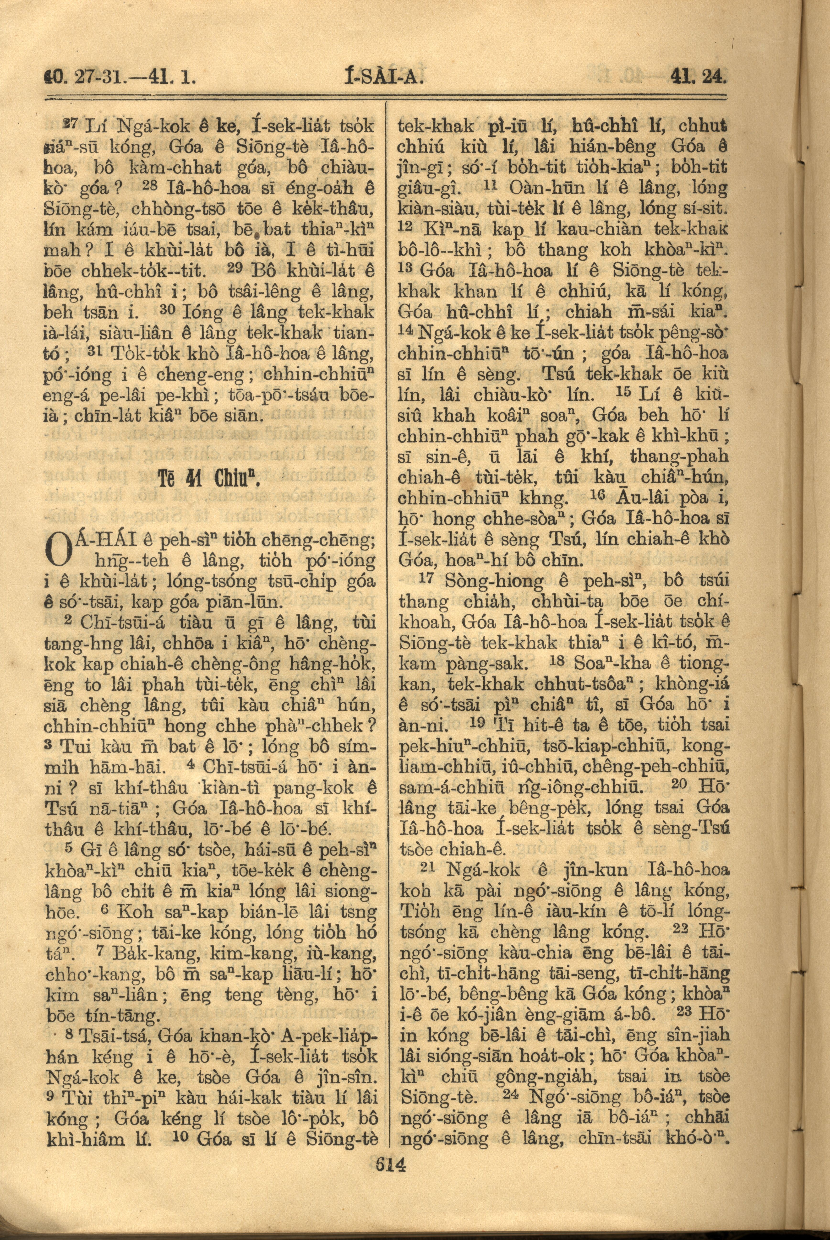 1921年羅馬字舊約全書 以賽亞書 40 章 27 節到 41 章 24 節