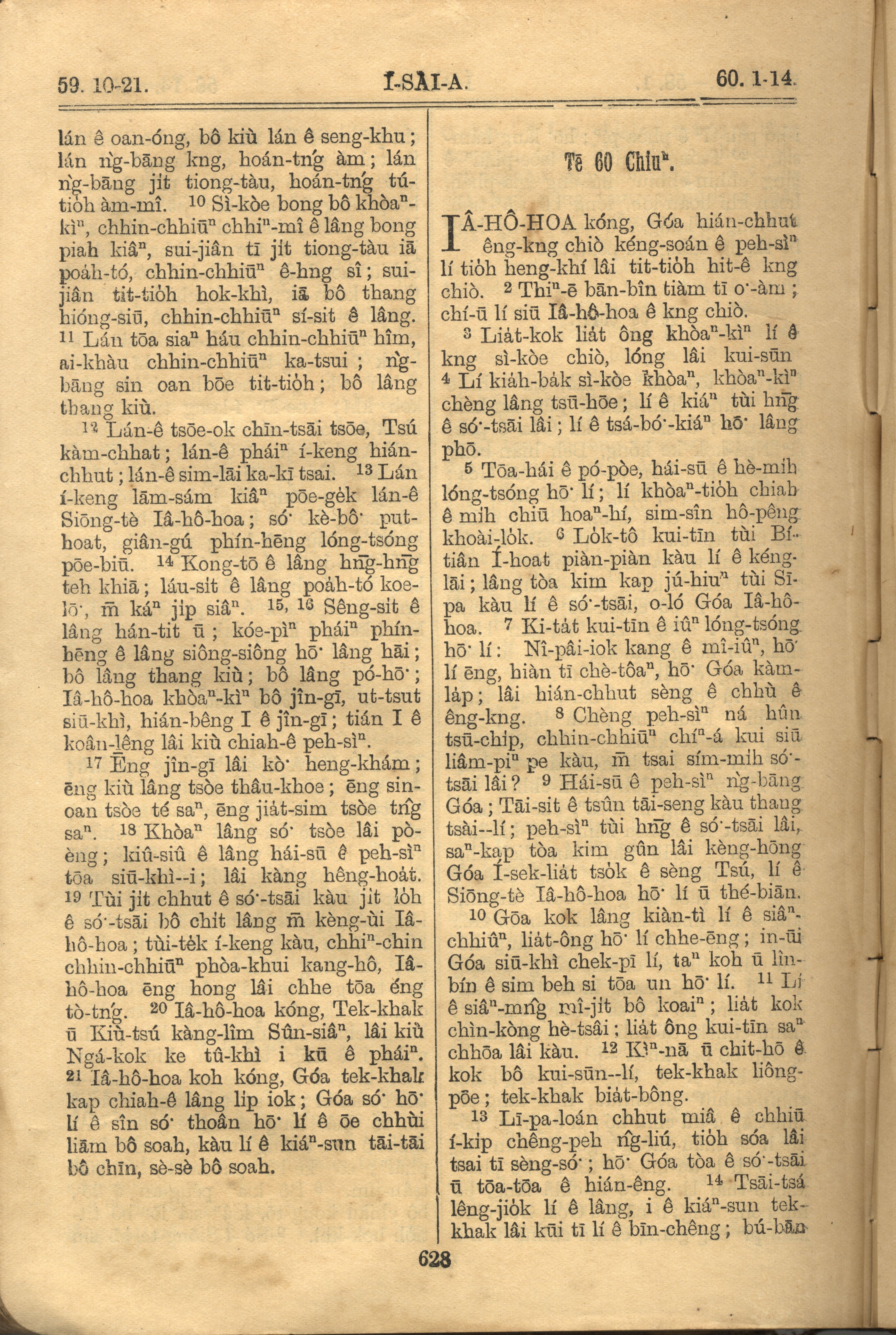1921年羅馬字舊約全書 以賽亞書 59 章 10 節到 60 章 14 節