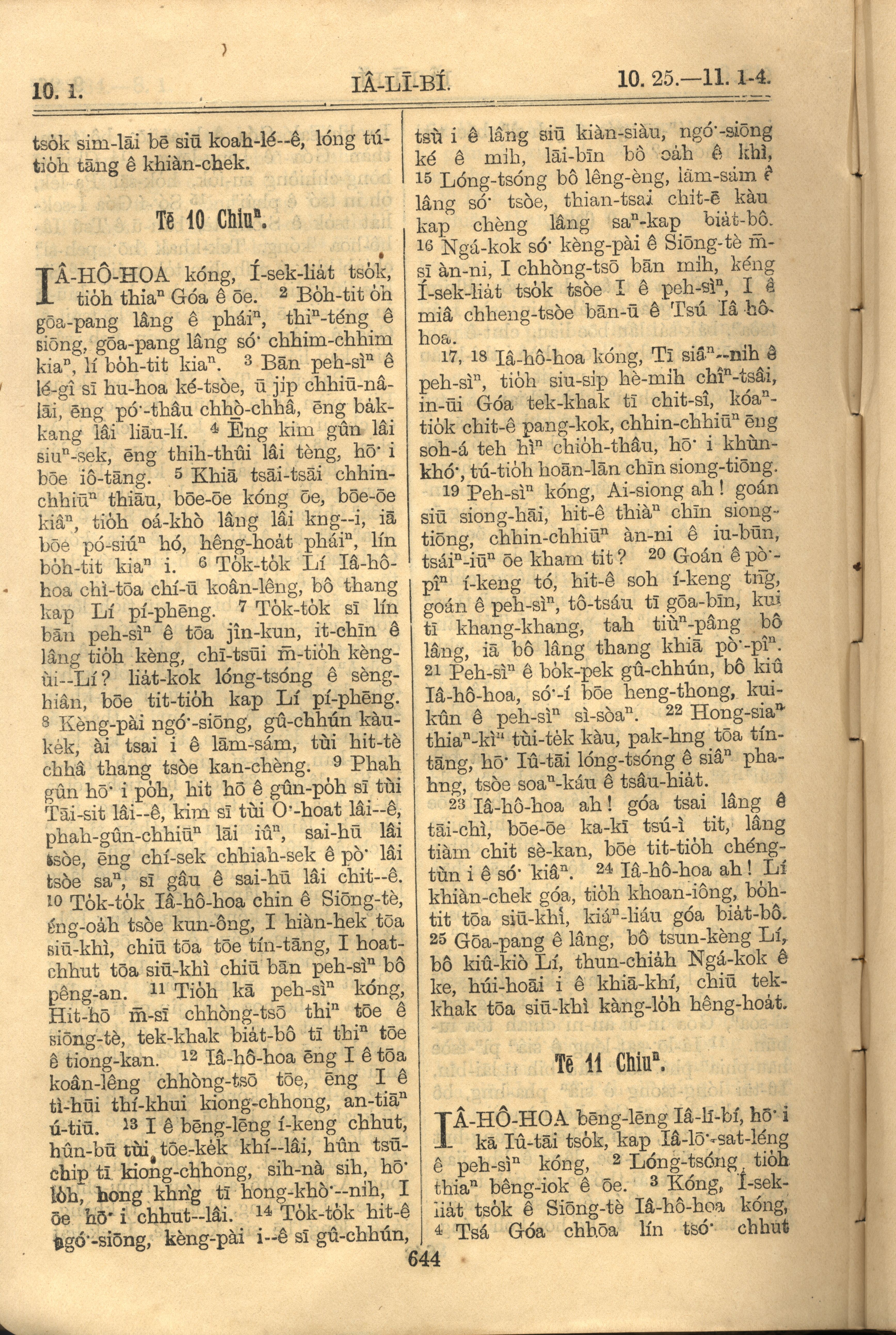 1921年羅馬字舊約全書 耶利米書 10 章 1 節到 11 章 4 節