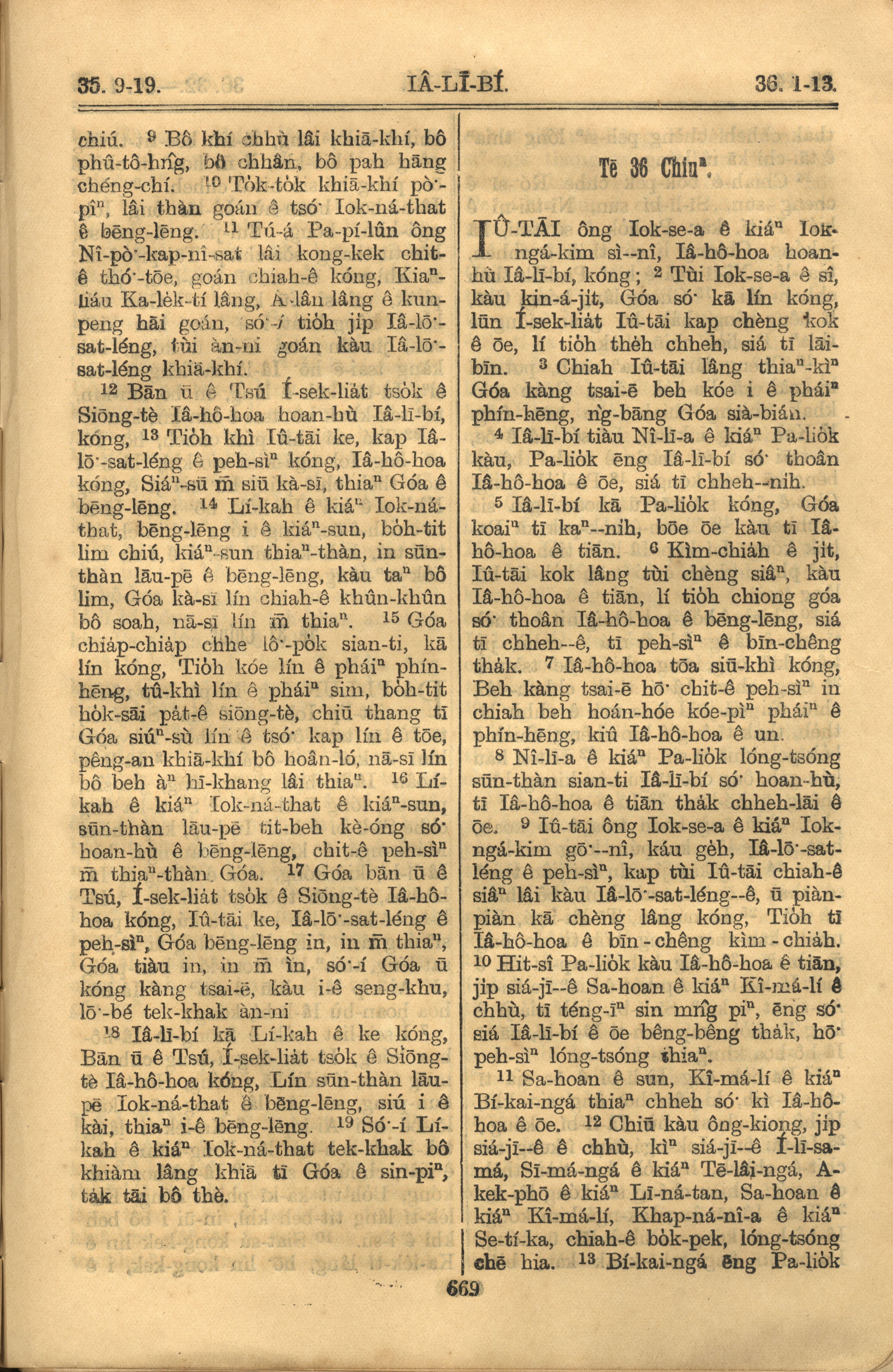 1921年羅馬字舊約全書 耶利米書 35 章 9 節到 36 章 13 節