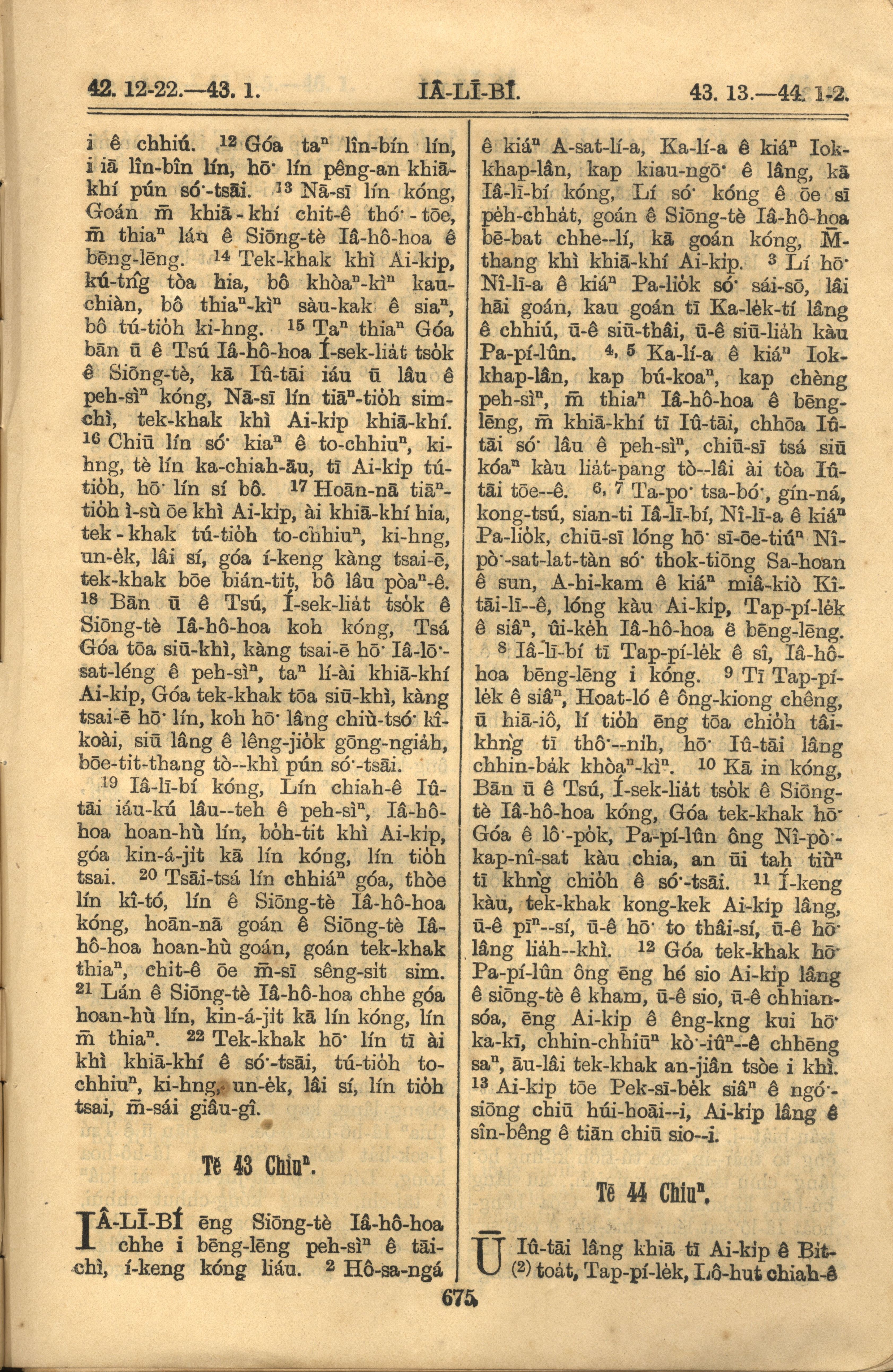 1921年羅馬字舊約全書 耶利米書 42 章 12 節到 44 章 2 節